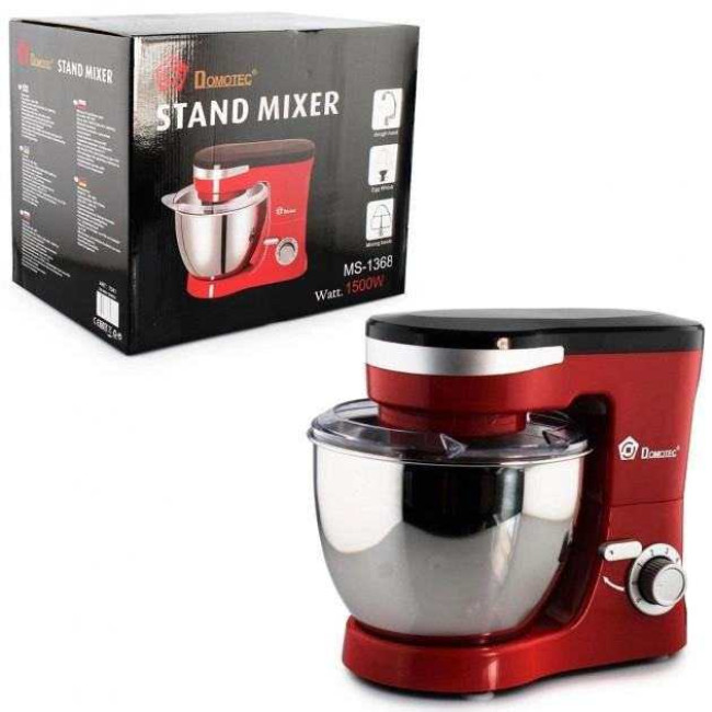 Міксер-тестоміс планетарний Domotec MS-1368 на 6 швидкостей 3 насадки чаша 4 л 1500 W