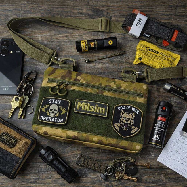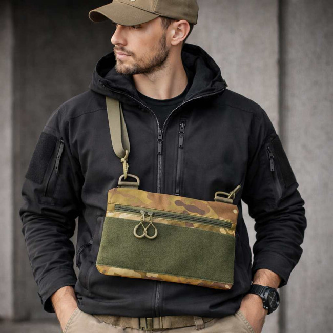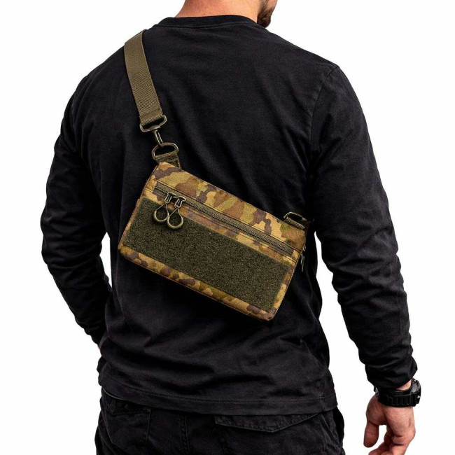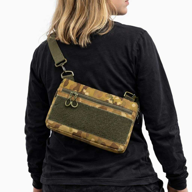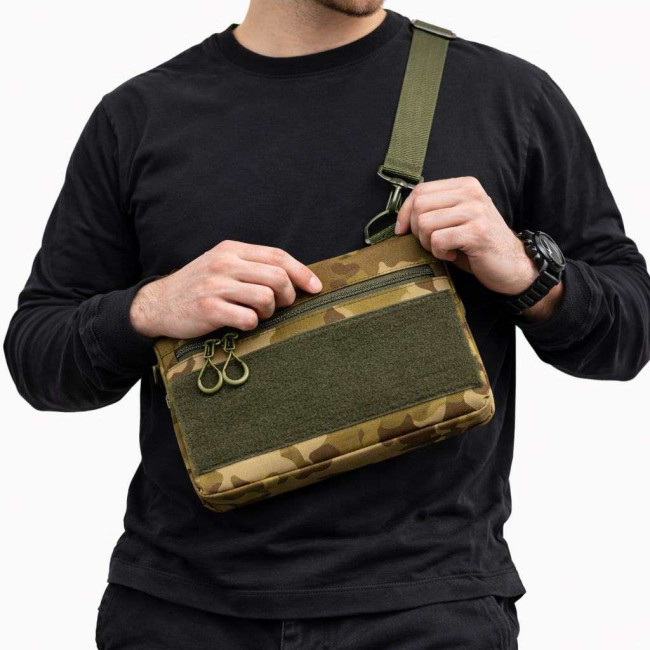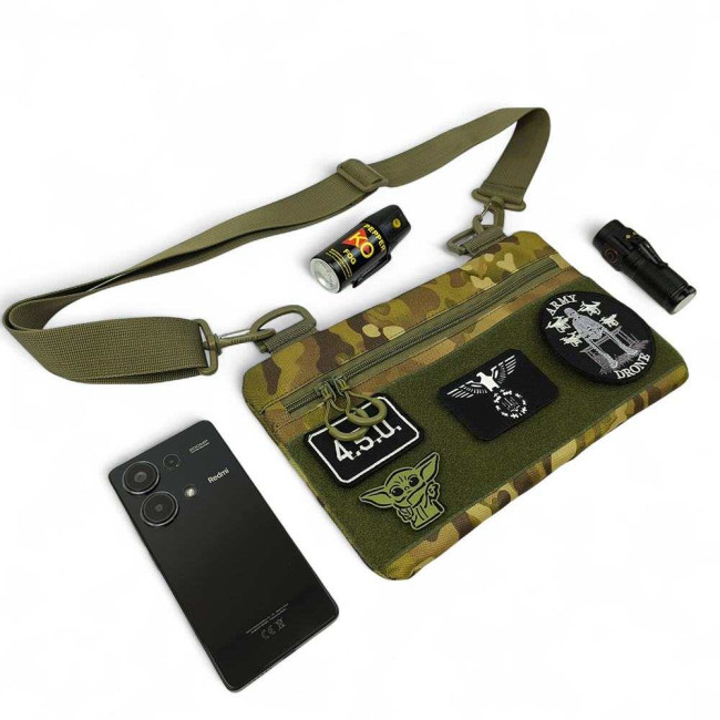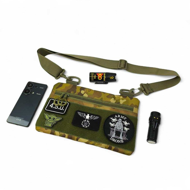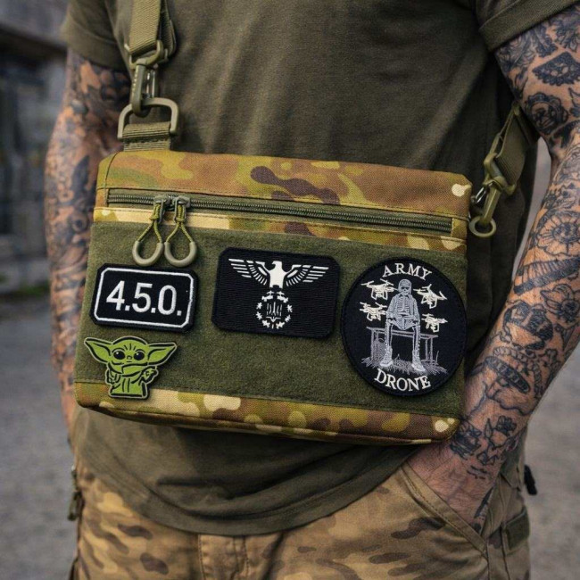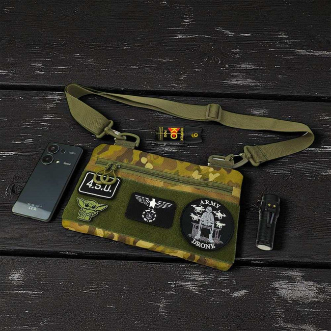 Сумка має продуману конструкцію з 4 кишенями (дві зовнішні та дві внутрішні), велика patch-панель дозволяє кріпити шеврони, патчі та будь-які індивідуальні нашивки, а всередині є карабін для ключів та прозорі кишені з 3D-сітки.