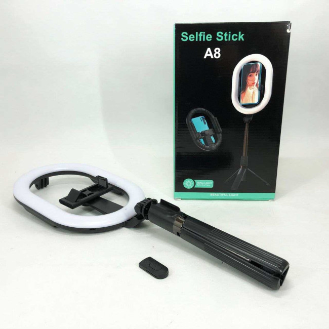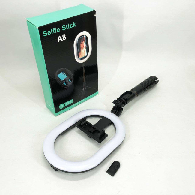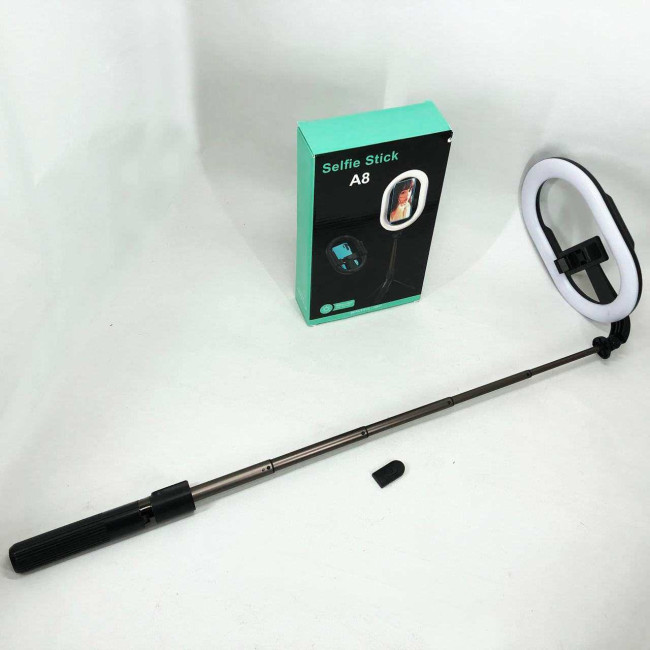 Монопод-штатив для селфі з кільцевою LED лампою Selfie Stick A8 телескопічний з пультом та Bluetooth