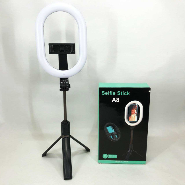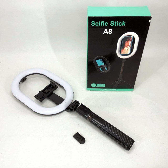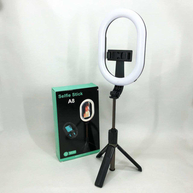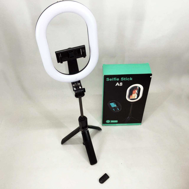- Трипід-монопод для селфі з кільцевою лампою A8 Bluetooth пультом