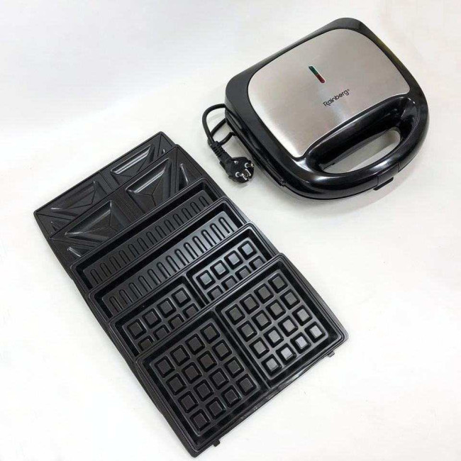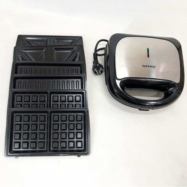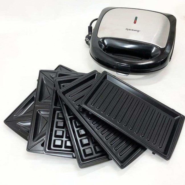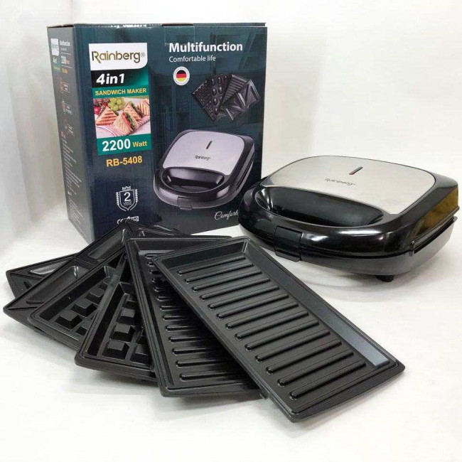 Характеристики: Мультимейкер Rainberg RB-5408 4в1 вафельниця, бутербродниця, горішниця, гриль 2200 Вт