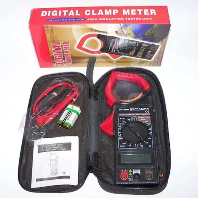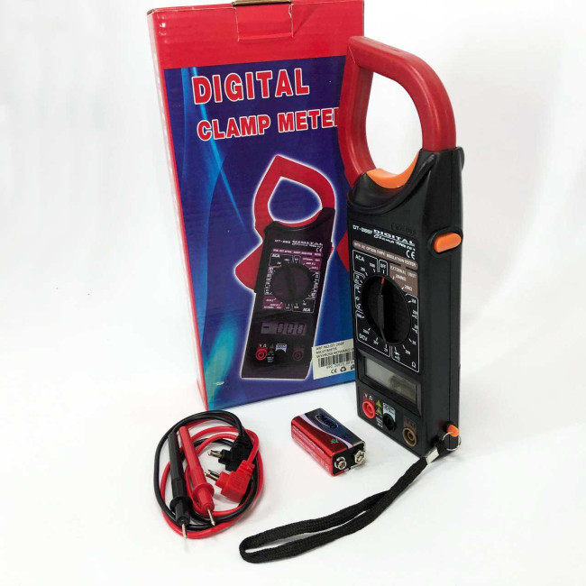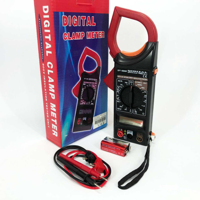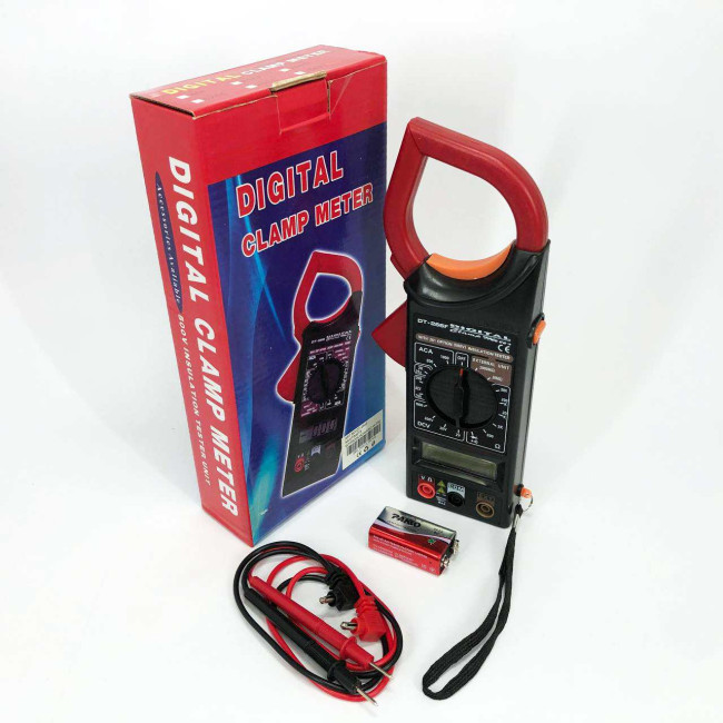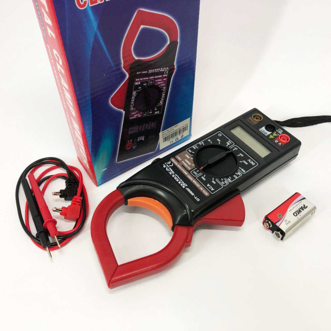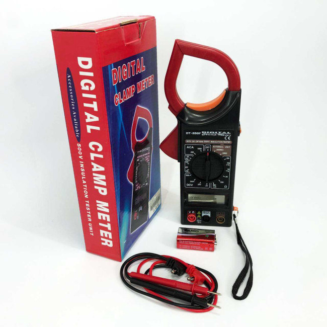 Цифровий Мультиметр DT 266F струмові кліщі Призначені для вимірювання сили струму безконтактним способом з високою точністю, не перериваючи подачу електроенергії споживачам, а також для постійної та змінної напруги, вимірювання опору, тестування діодів, вимірювання частоти.