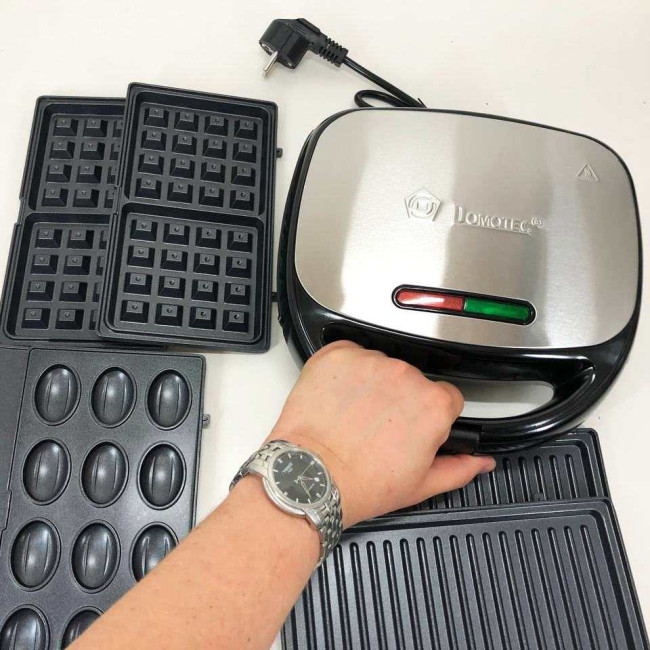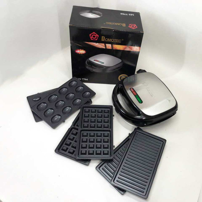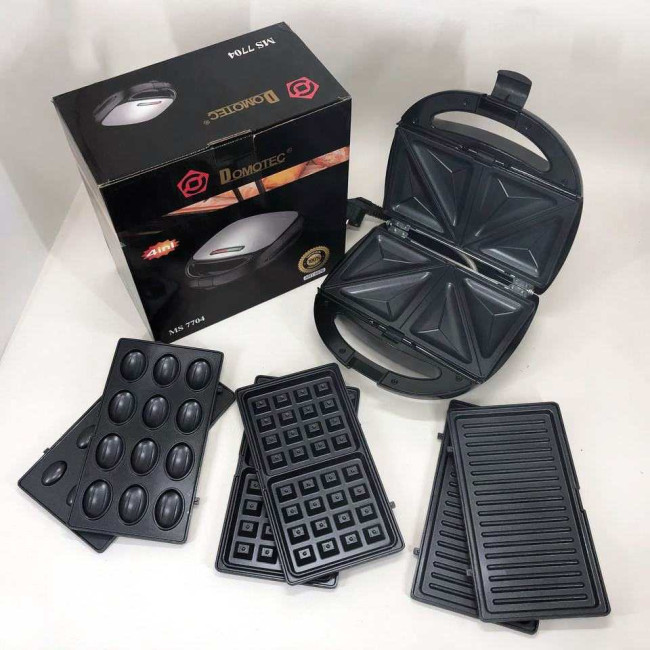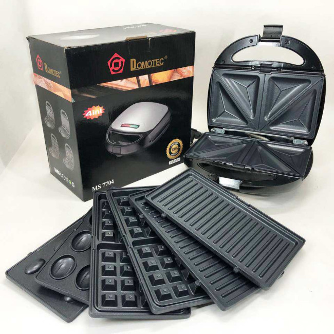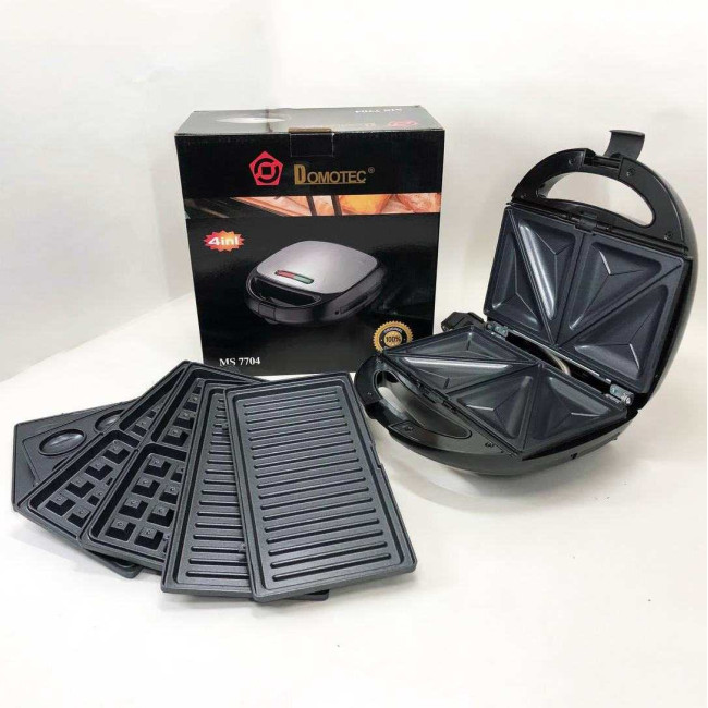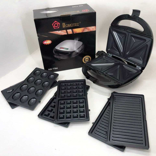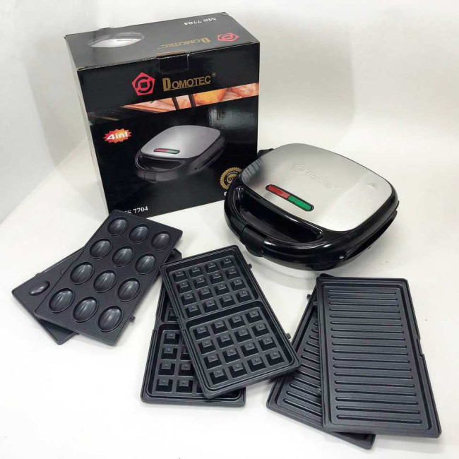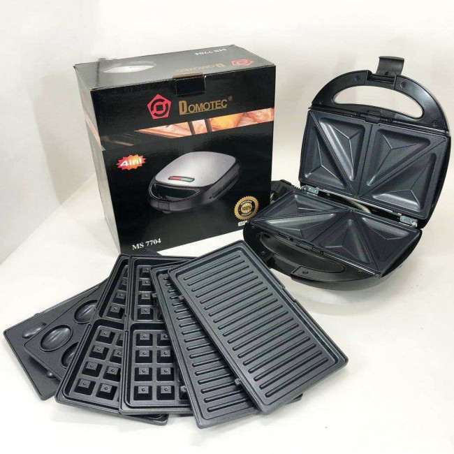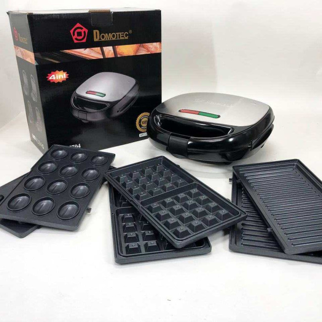 4 в 1 Гриль, бутербродниця, вафельниця, ліщина Domotec ms 7704, 1000Вт зі знімними формами: