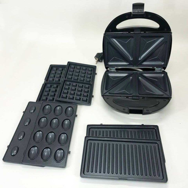 Мультипекар вафельниця бутербродниця сендвічниця гриль електрична 4 в 1 з формами Domotec MS-7704
