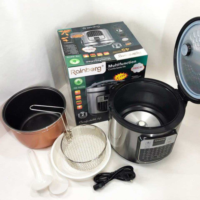 Мультиварка пароварка Rainberg RB-6209 45 програм 6л 1000W, Сенсорна мультиварка рисоварка