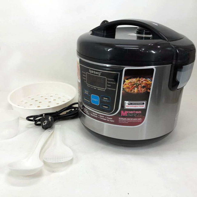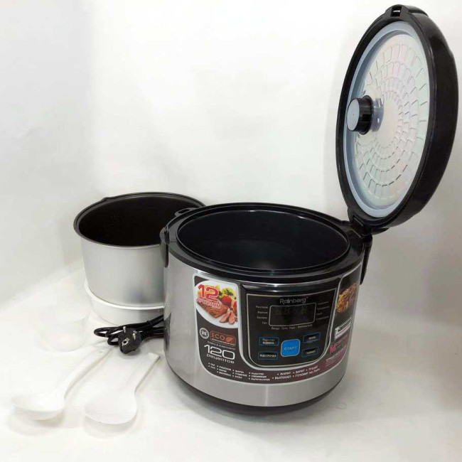 Вашу улюблену страву Ви зможете приготувати в мультиварці Rainberg якнайкраще завдяки рівномірному нагріванню їжі. Продукти в мультиварці прогріваються рівномірно з усіх боків – знизу, з боків та зверху. У мультиварці використовується LED-дисплей, який робить керування та роботу з нею зручним та простим процесом. Навчитися управлінню мультиваркою не важко навіть людям з мінімальним досвідом у використанні побутової техніки.