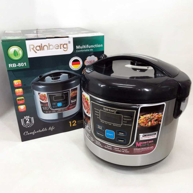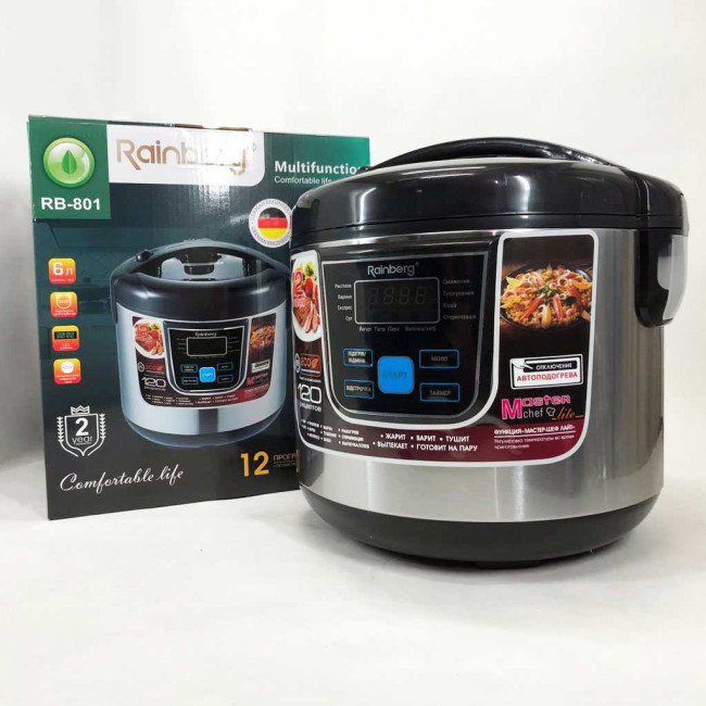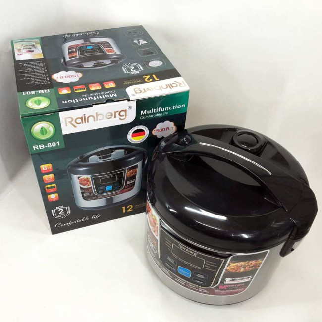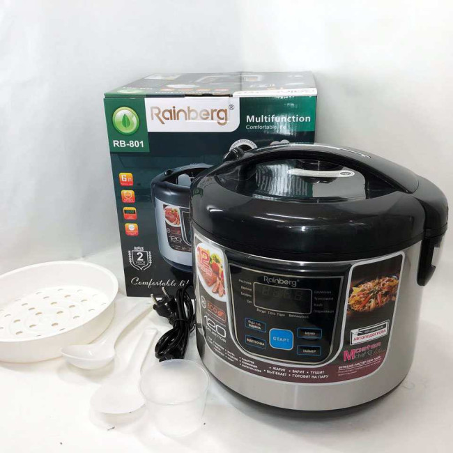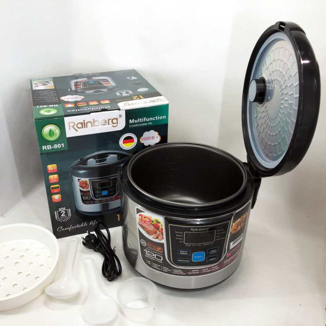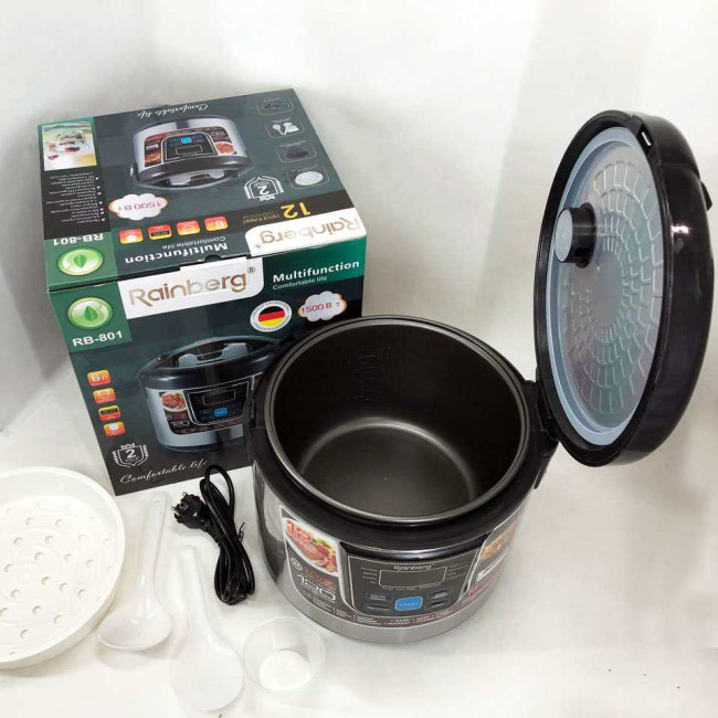 Мультиварка Rainberg RB-801 з 12 програмами 1500 Вт на 6 літрів, скороварка пароварка мультиварка