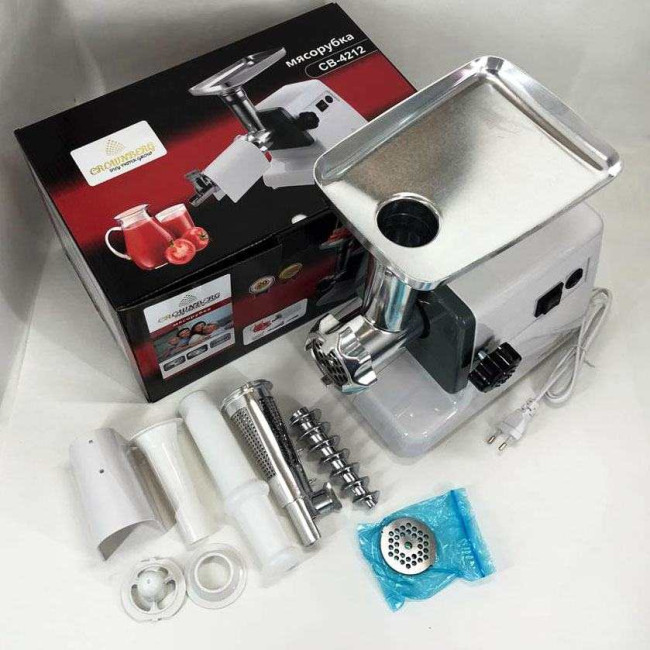 М'ясорубка Crownberg CB-4212 із соковижималкою, електром'ясорубка 2500W, м'ясорубка із металевим редуктором