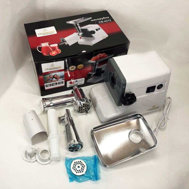 З поставленим завданням за лічені хвилини приготувати соковитий м’ясний фарш із яловичини, курки, баранини чи риби нам допоможе диво м’ясорубка Crownberg CB 4212 з максимальною потужністю електроспоживання 2500 Вт.
