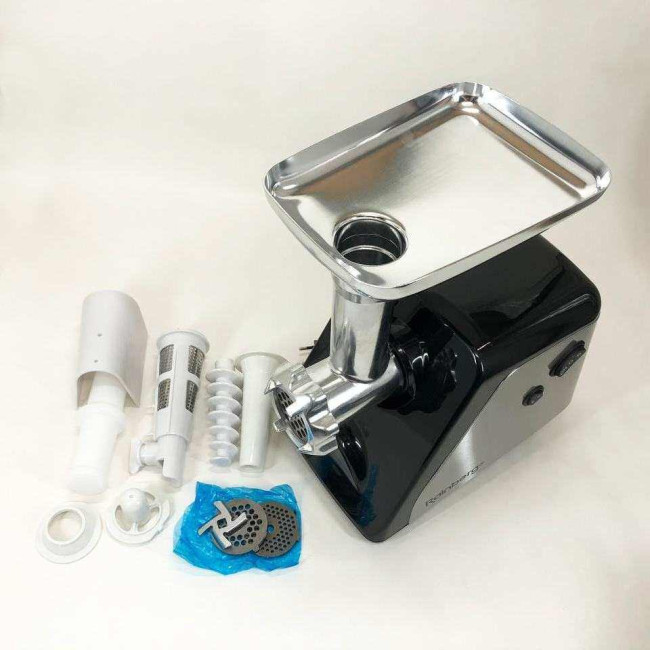 Корпус виконаний з нержавіючої сталі та удароміцного пластику, прогумовані анти-ковзні ніжки. Потужність двигуна 3800W. Два гострі ножі з високоякісної нержавіючої сталі. Набір ґрат для приготування фаршу. Низький рівень шуму.
