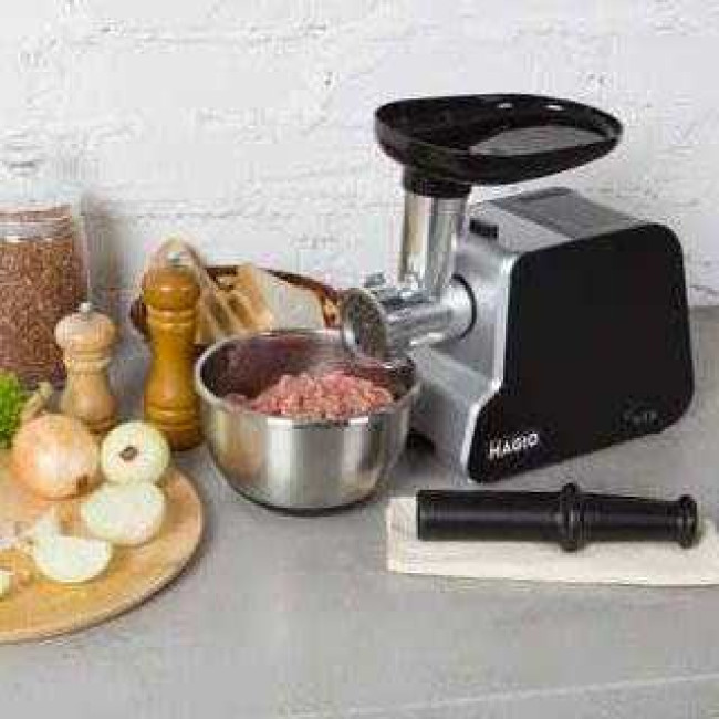 - Потужний мотор 2000 Вт, що забезпечує швидке і безперебійне подрібнення м’яса.