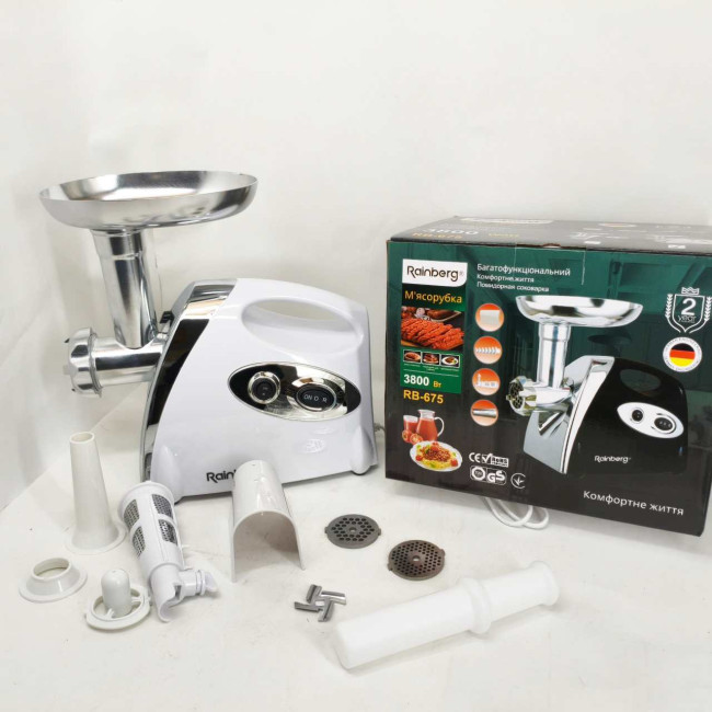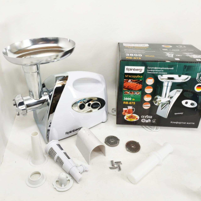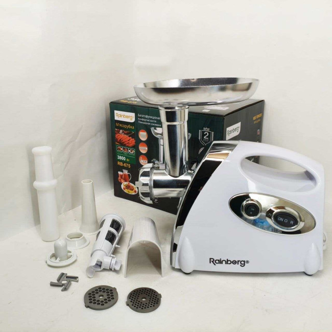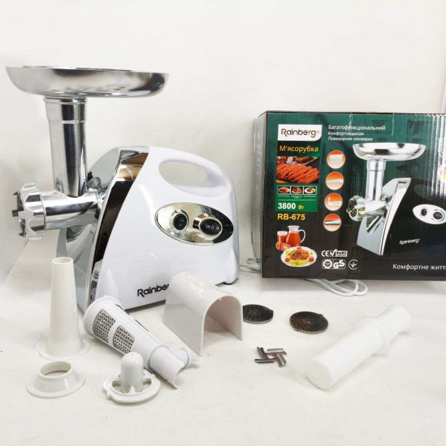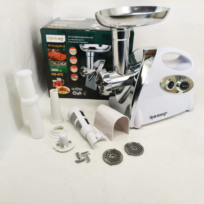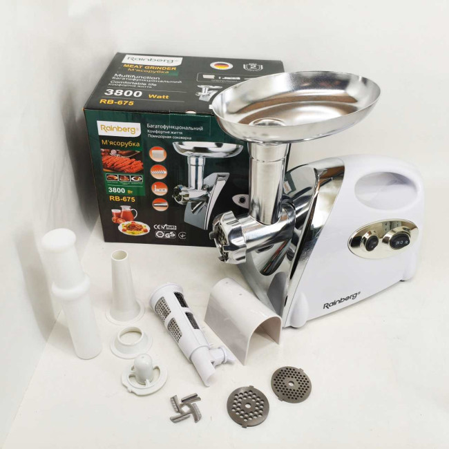 М'ясорубка Rainberg RB-675 3800Вт із соковижималкою, електрична з насадками для шатківниці White