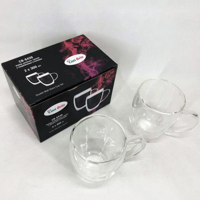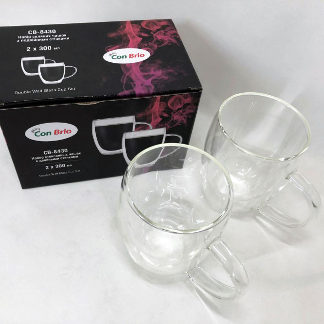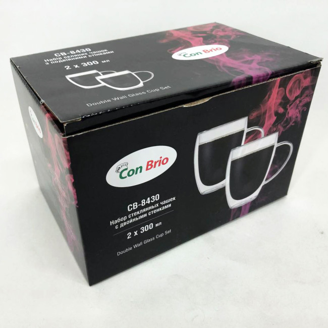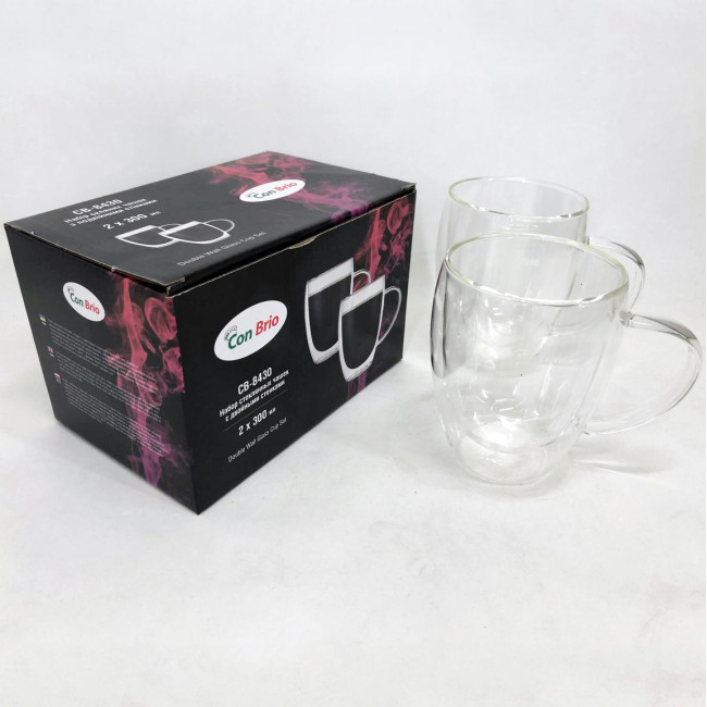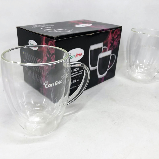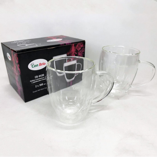 Набір чашок із подвійним дном Con Brio виготовлений зі скла. Зручні, місткі чашки є незамінними будинками і на робочому столі в офісі. Можна мити в посудомийній машині. Також ідеально підійдуть для домашнього використання.