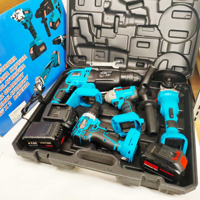 - У Цей Набір Входять Акумуляторна Дриль, Акумуляторна Ударна Шуруповерт, Акумуляторна Кутова Шліфувальна Машина Та Акумуляторна Дриль Sds, Що Робить Його Чудовим Вибором Для Різноманітних Робочих Завдань.