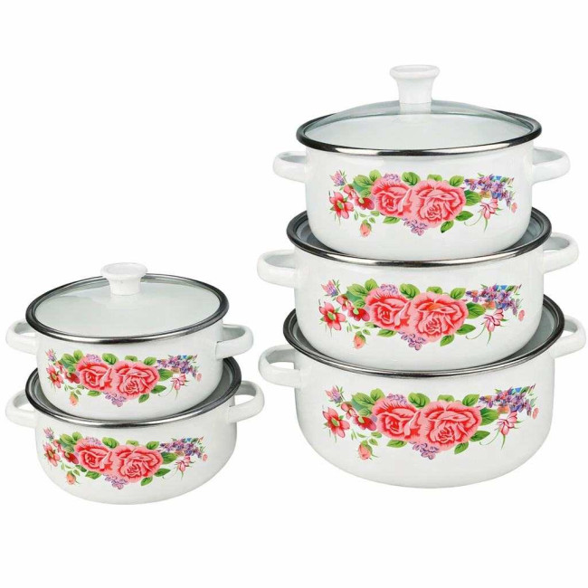 Набір із 5 емальованих каструль із кришками UNIQUE UN-2355 10 предметів Для всіх типів плит