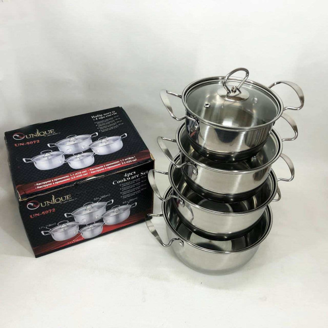 Склад набору посуду UNIQUE UN-5072 (1.1/1.7/2.5/3.2 л):