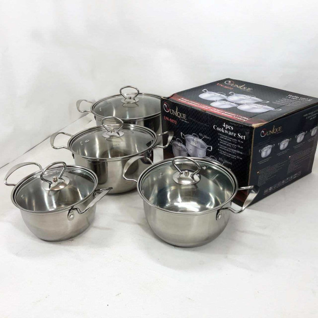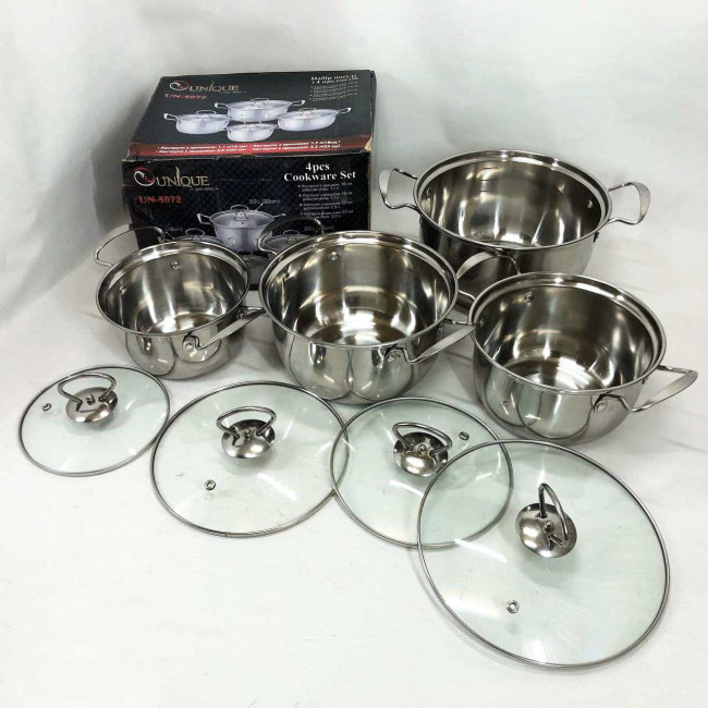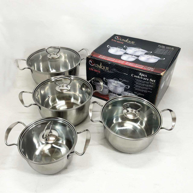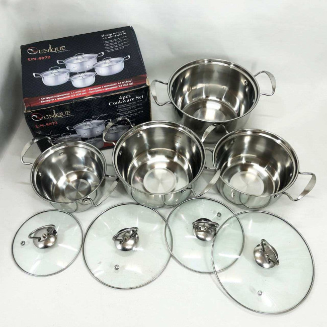 Набір каструль Unique UN-5072 8 предметів нержавіюча сталь скляні кришки, Набір посуду для плит