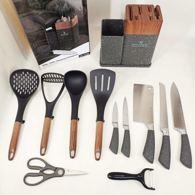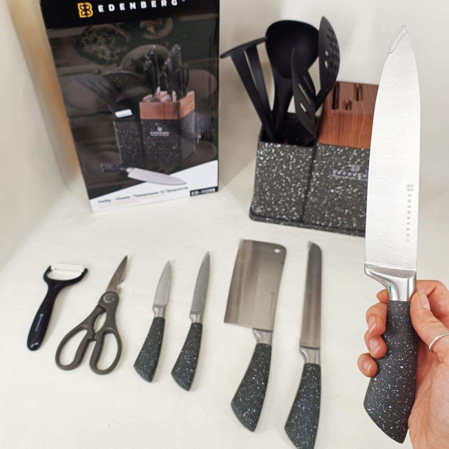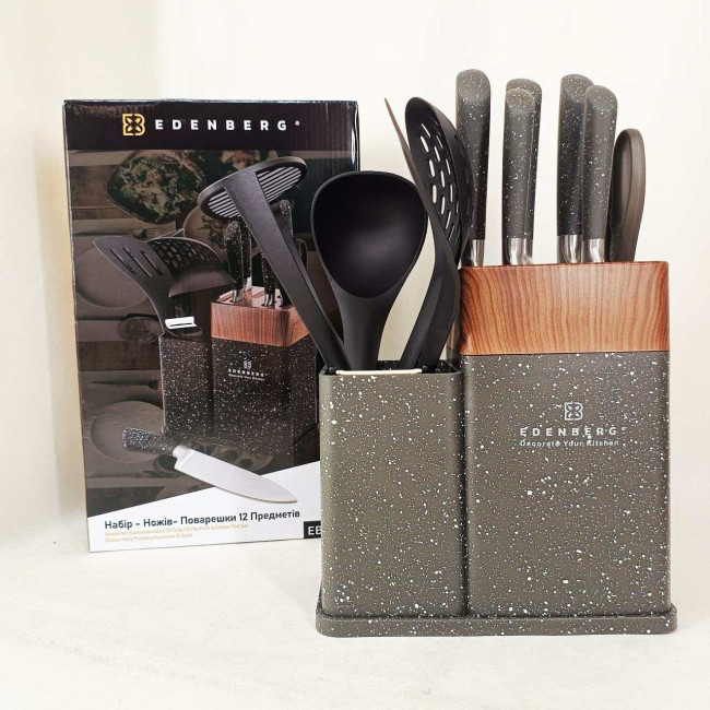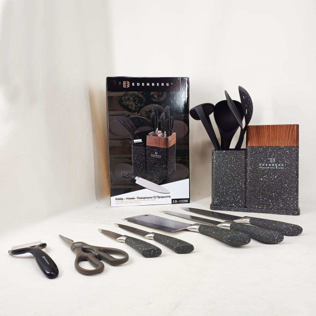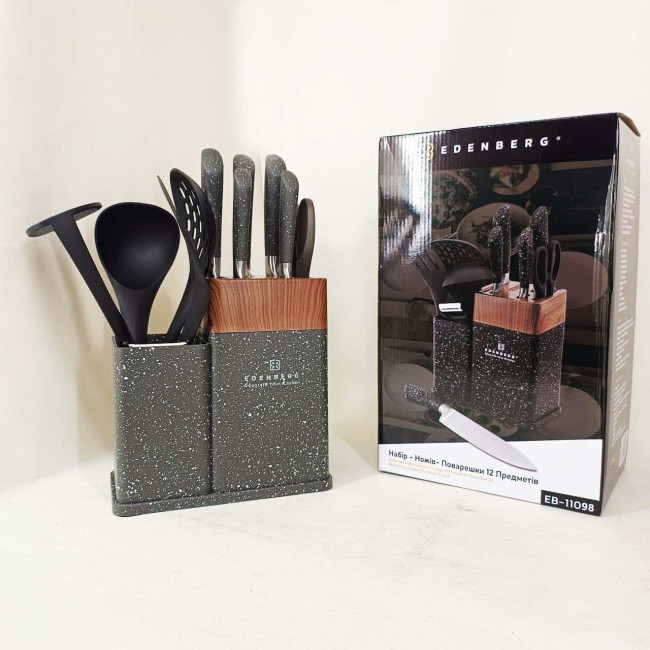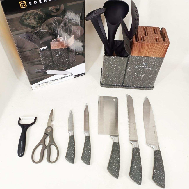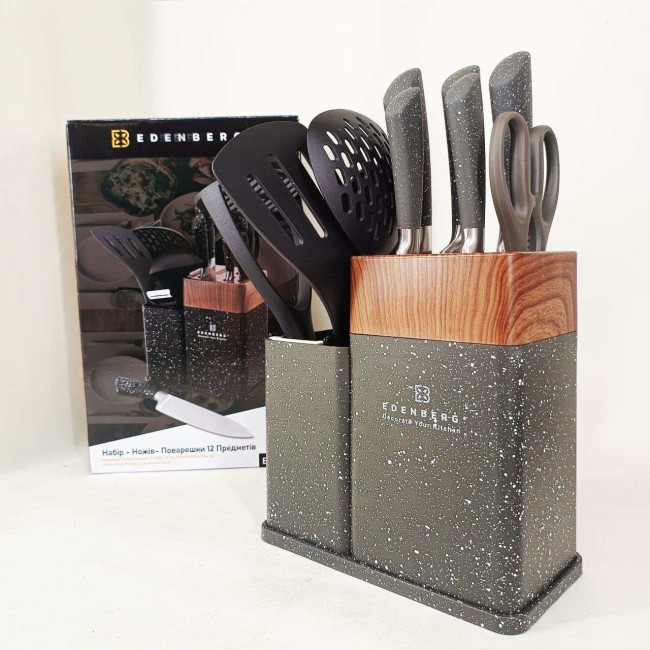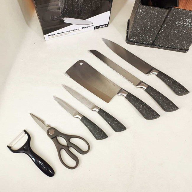 Набір кухонних ножів Edenberg EB-11098 із 12 предметів на стійці Gray