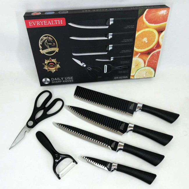 Набір кухонних ножів із сталі 6 предметів Genuine King-B0011, набір ножів для кухні, кухонний набір ножів