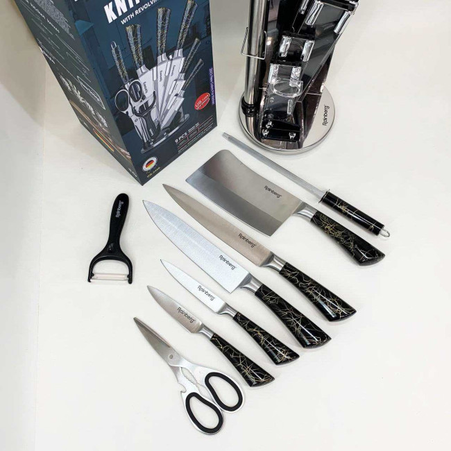 Набір кухонних ножів Rainberg RB-2499 8 предметів на підставці, що обертається Black