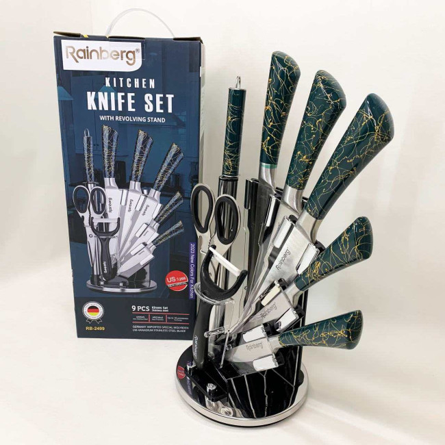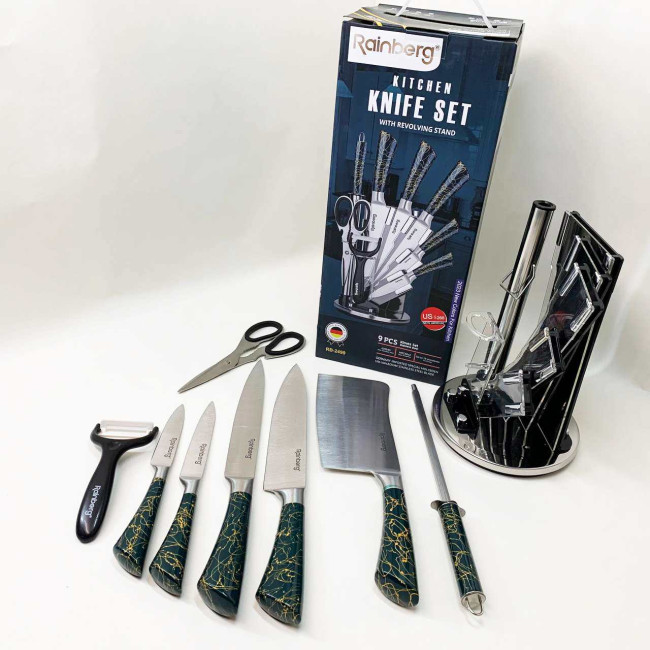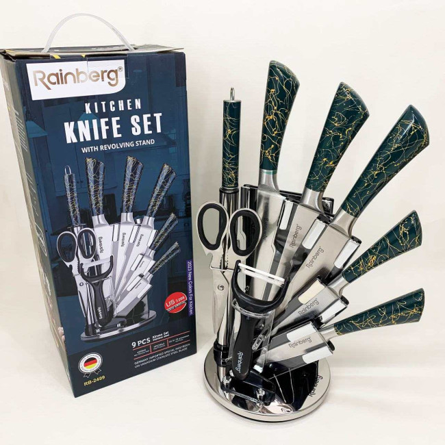 Набір кухонних ножів Rainberg RB-2499 8 предметів на підставці, що обертається Green