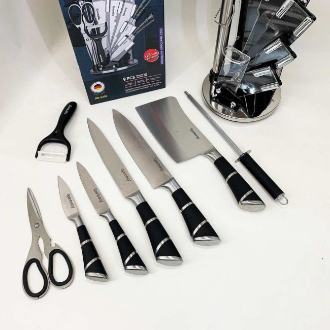Набір кухонних ножів Rainberg RB-2499 8 предметів на підставці, що обертається Смуги