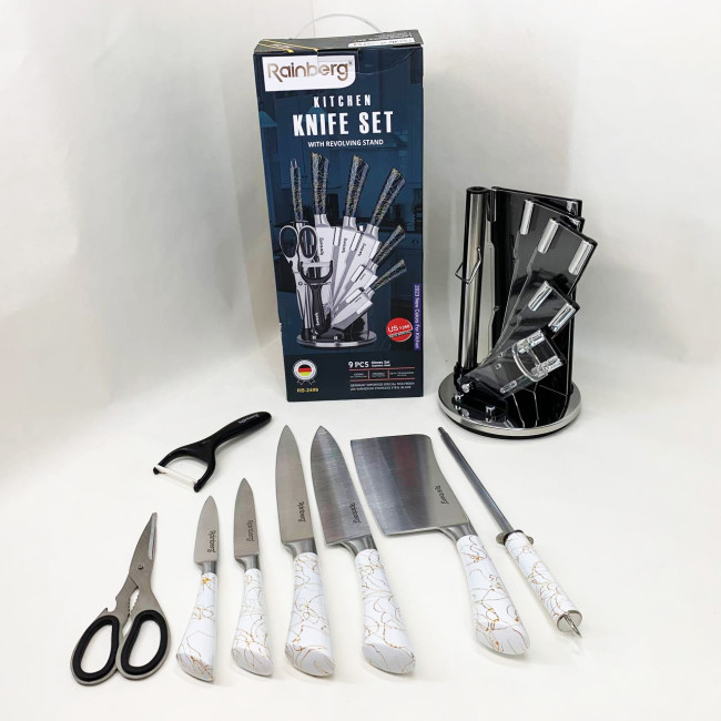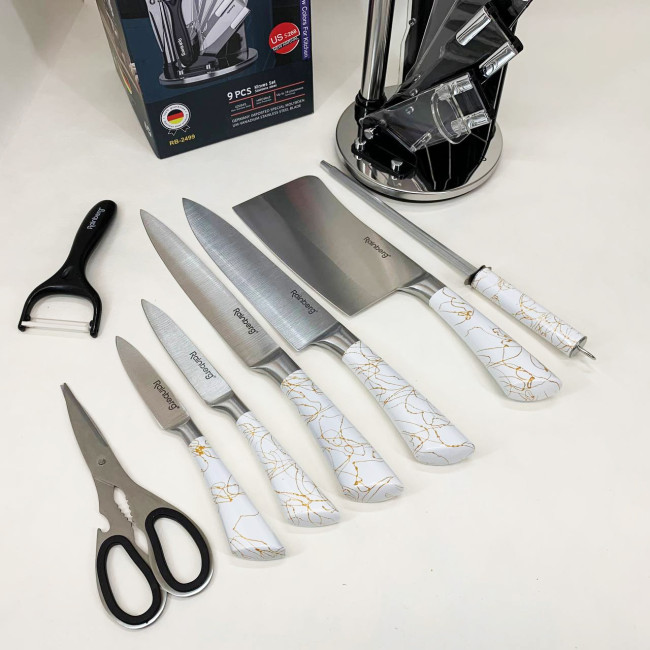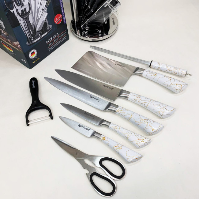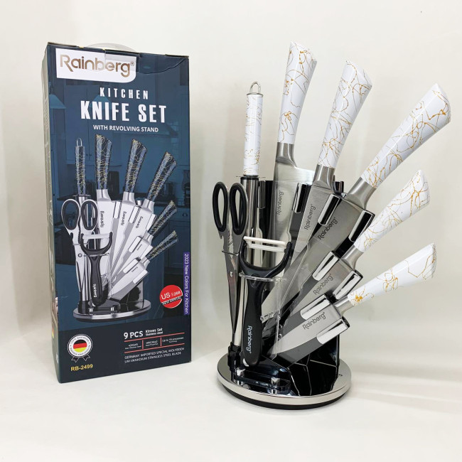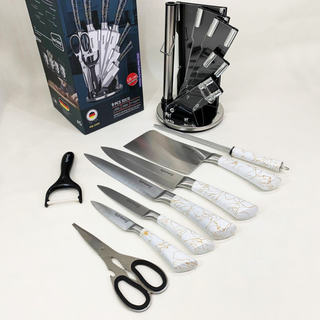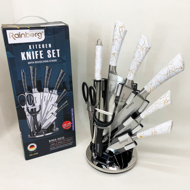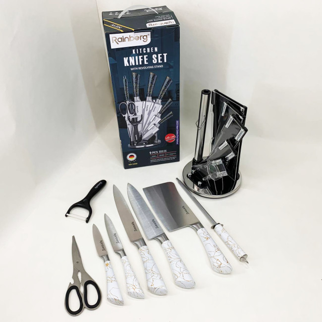 Набір кухонних ножів Rainberg RB-2499 8 предметів на підставці, що обертається White