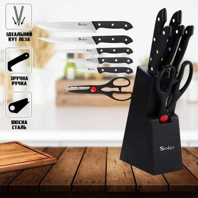 Набір кухонних ножів з ножицями та підставкою UNIQUE UN-1836