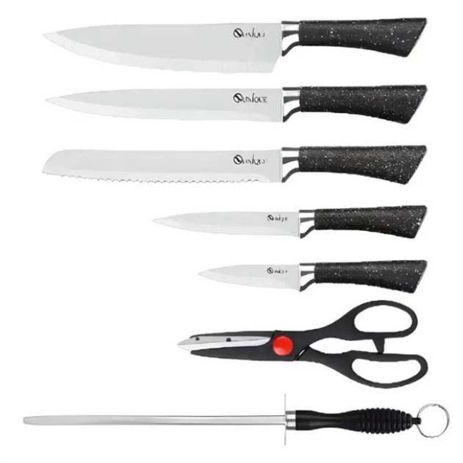 Набір Кухонних ножів з ножицями та підставкою UNIQUE UN-1837, Набір якісних ножів для дому