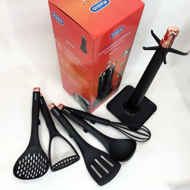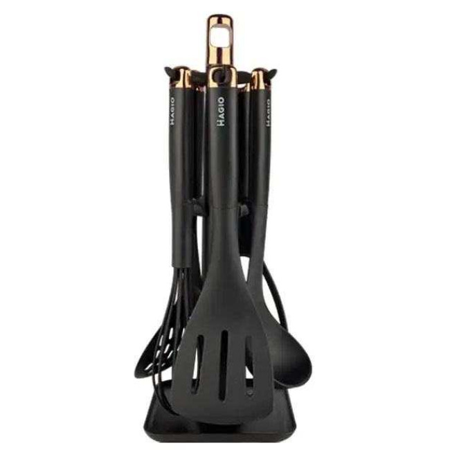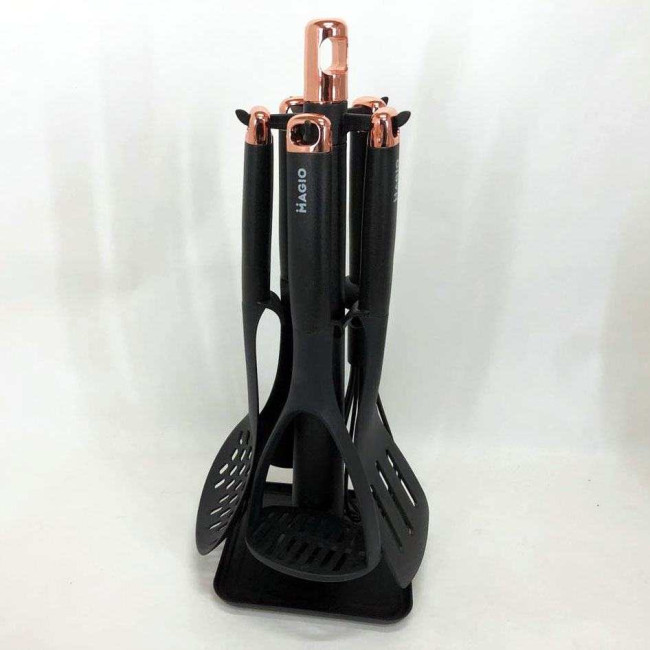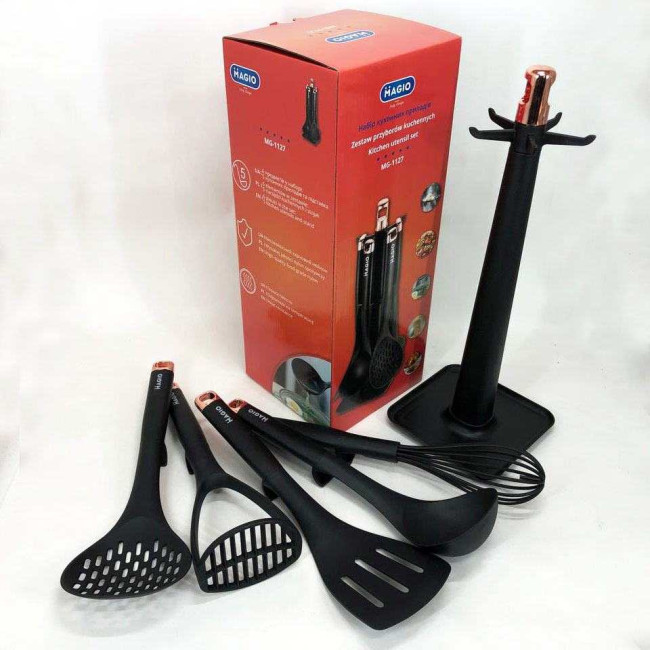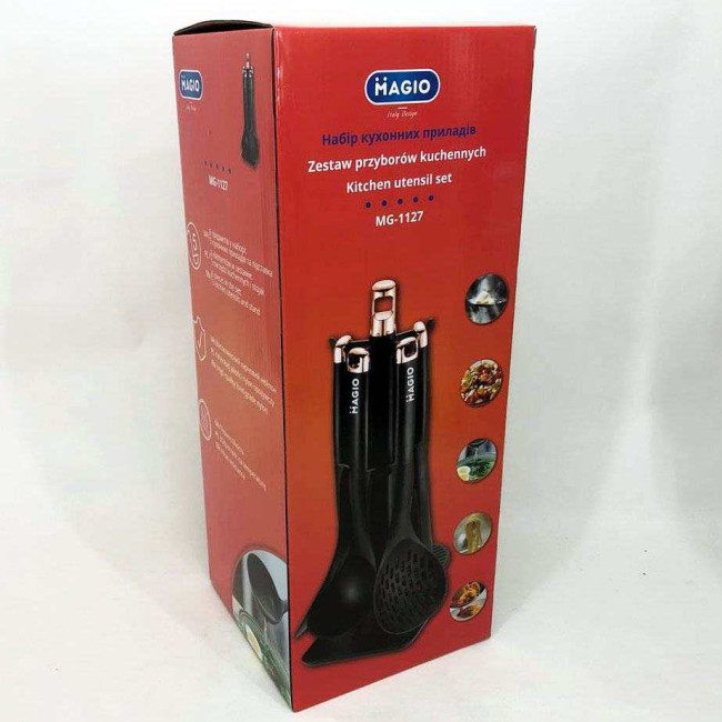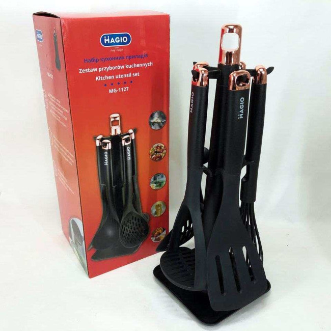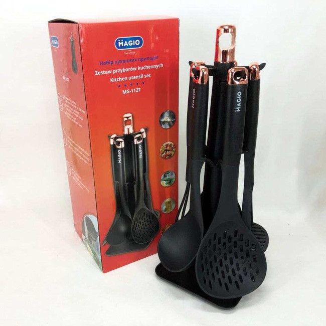 Комплект MG-1127 стане незамінним помічником у щоденному приготуванні різноманітних страв — від повсякденних сніданків до сімейних святкових обідів. Інструменти ідеально підходять для оброблення овочів, збивання соусів, перевертання страв на сковорідці і черпання перших страв. Особливо важливо, що набір не пошкоджує антипригарні сковорідки і каструлі, зберігаючи їхній довготривалий захист. Варіант із підставкою оптимальний для кухонь з обмеженим простором, оскільки організовує робоче місце і зберігає інструменти на видимому й зручному рівні.