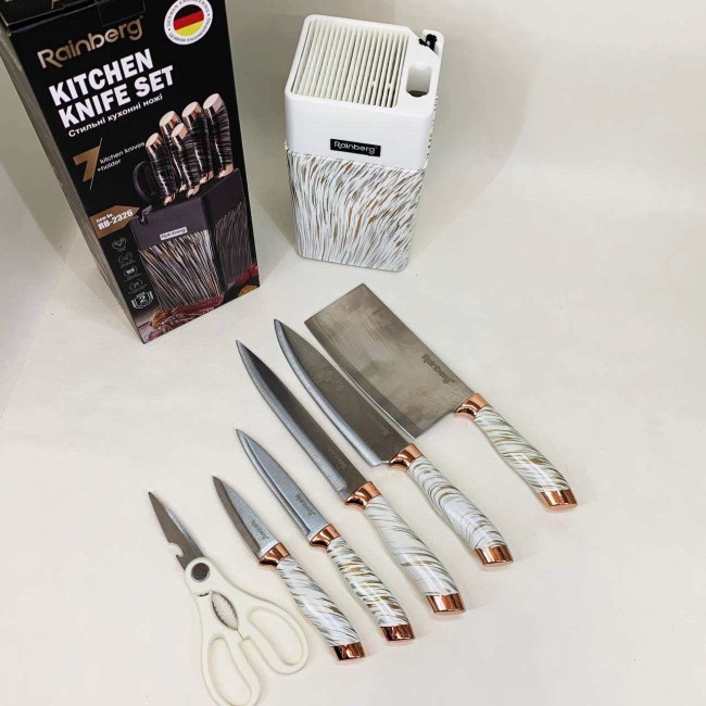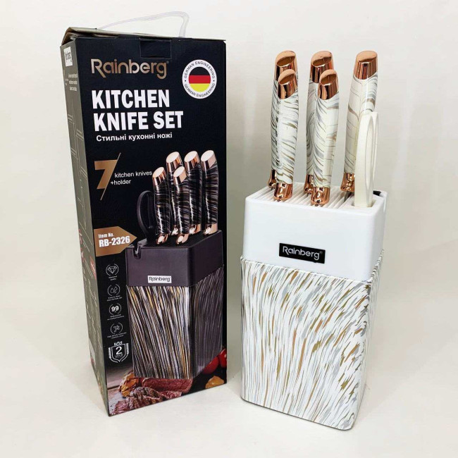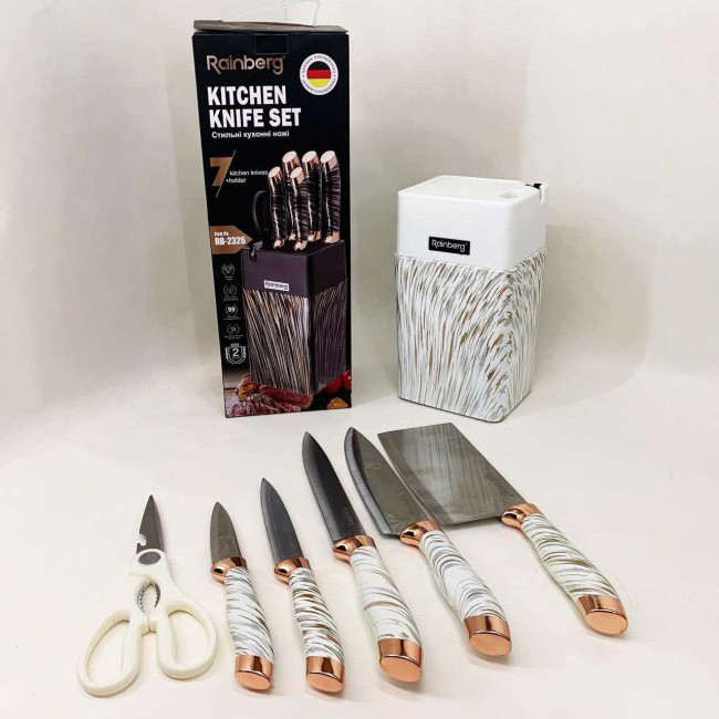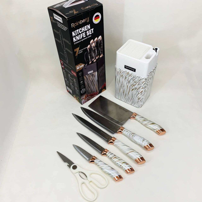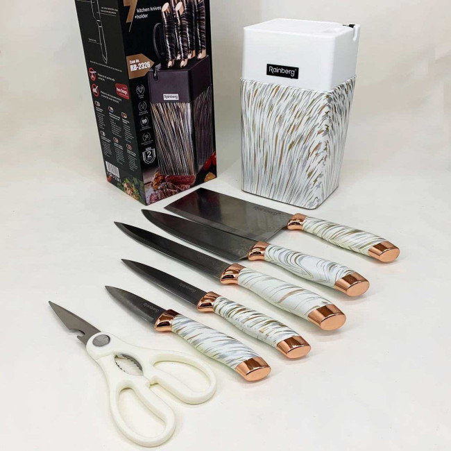 Набір ножів із нержавіючої сталі з основою Rainberg RB-2326 White