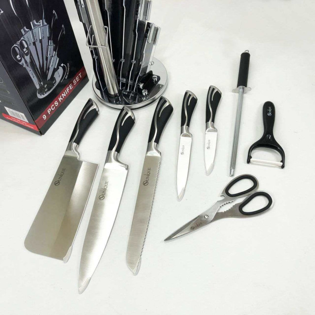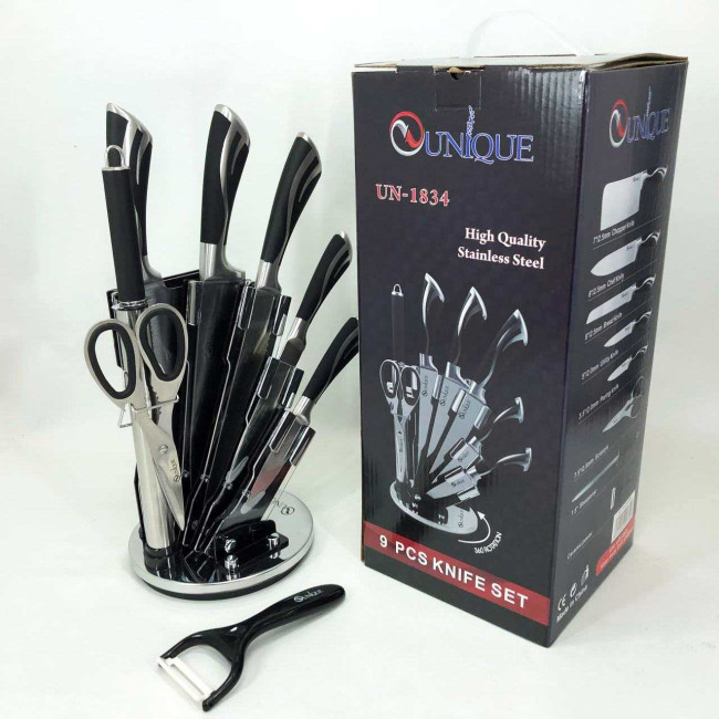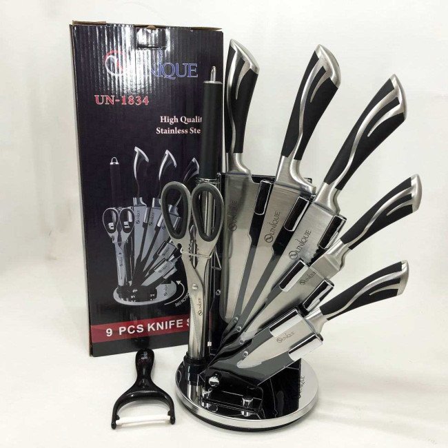 Набір ножів UNIQUE UN-1834 з 9 предметів, що обертається, Ножі кухонні з нержавіючої сталі