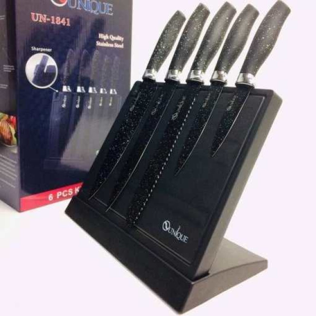 Набір ножів UNIQUE UN-1841 з нержавіючої сталі з підставкою + точила 6 предметів