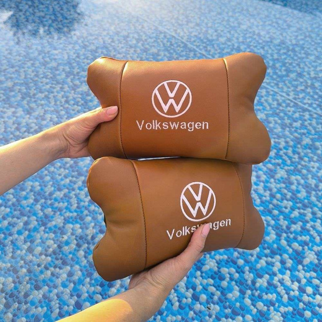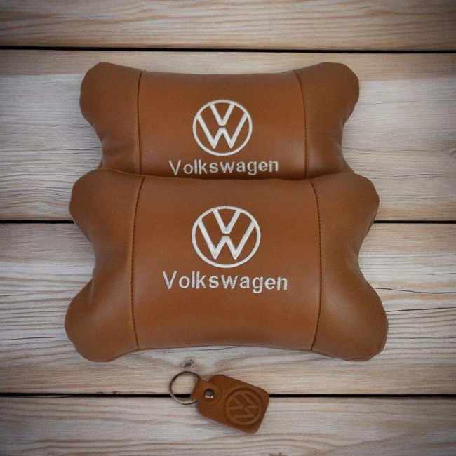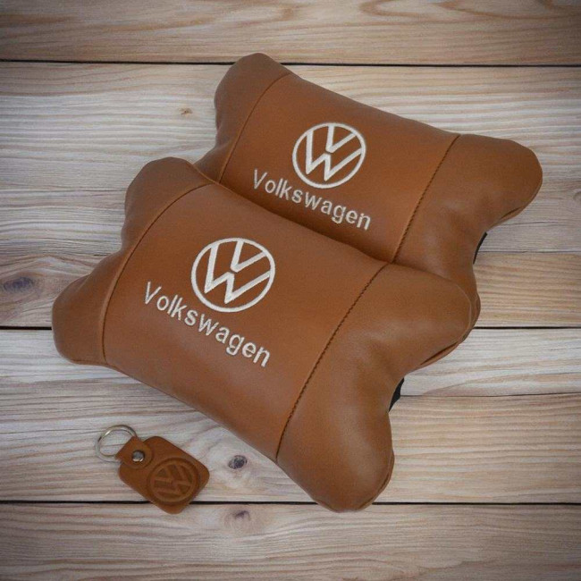 Набір подушок 2шт для автомобіля Volkswagen, з натуральної коричневої шкіри. Подушки на підголовник