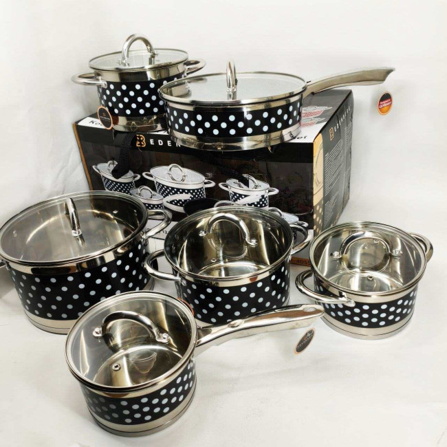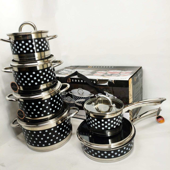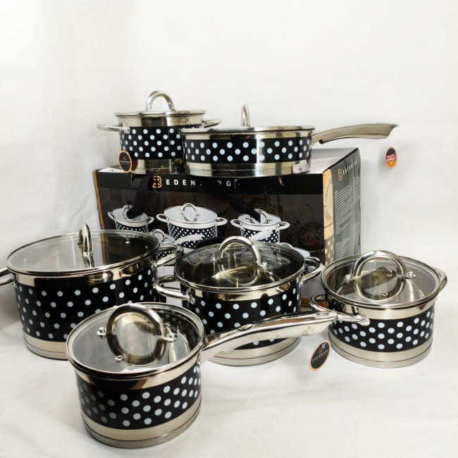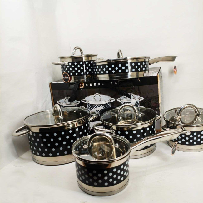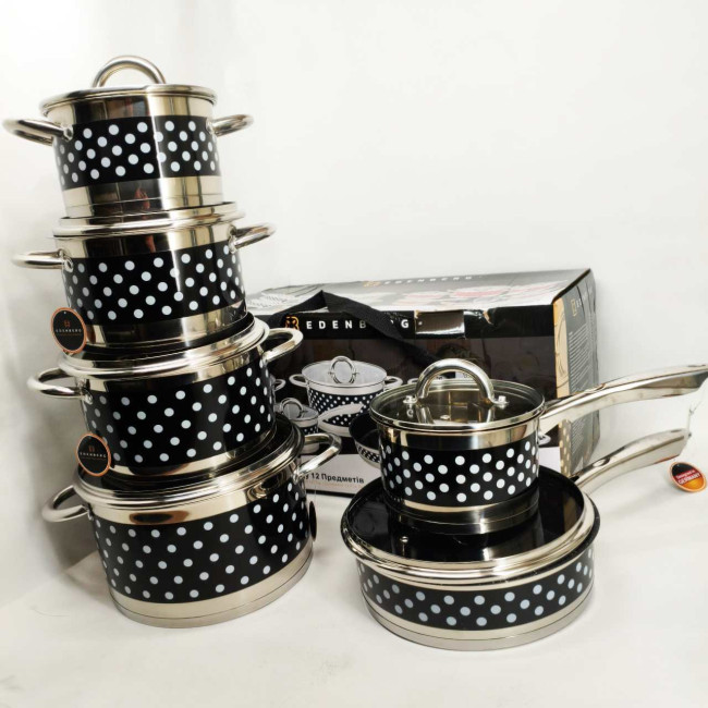 Набір посуду Edenberg з нержавіючої сталі 12 предметів (EB-4055) виготовлений з високоякісної харчової нержавіючої сталі 18/10.