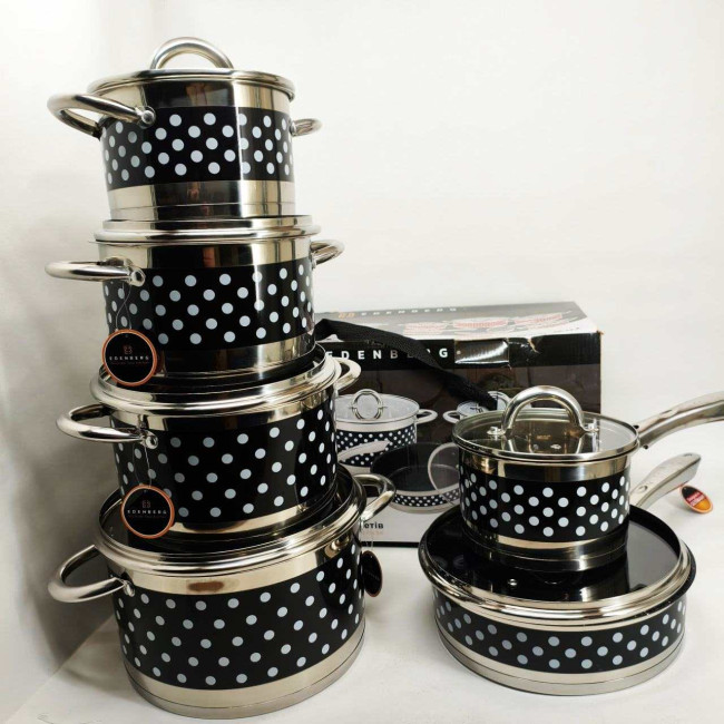 Набір посуду Edenberg з нержавіючої сталі 12 предметів (EB-4055) підходить для всіх джерел тепла, включаючи індукційні плити.