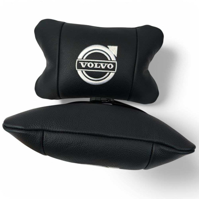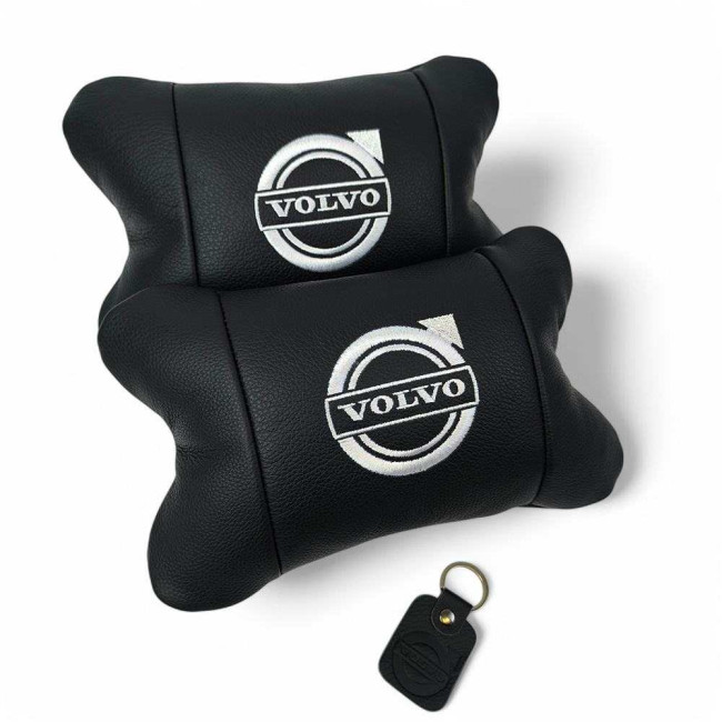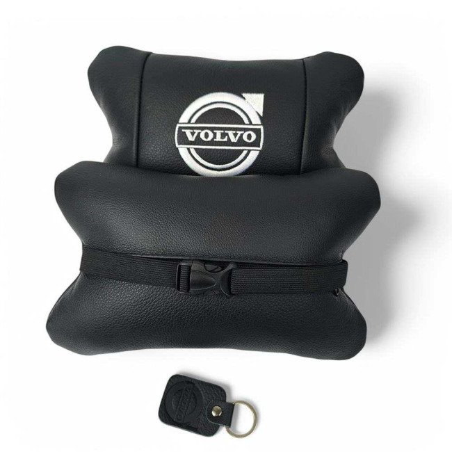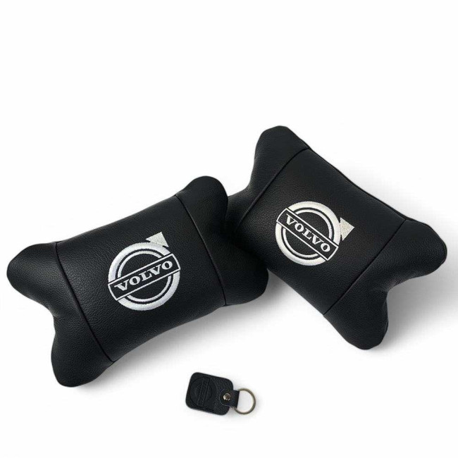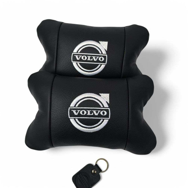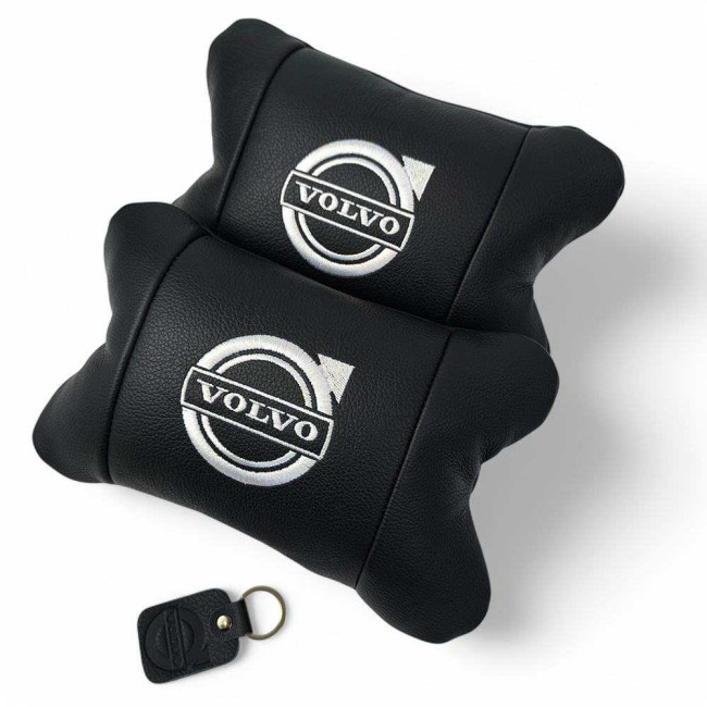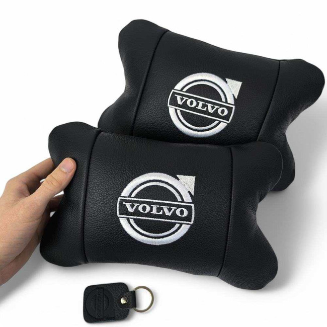 Набір шкіряних подушок Volvo + брелок у подарунок, Автоподушки Volvo з вишивкою