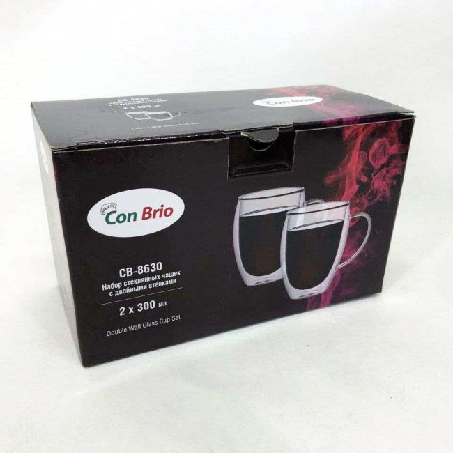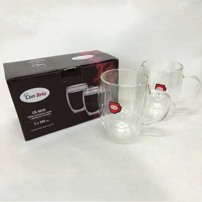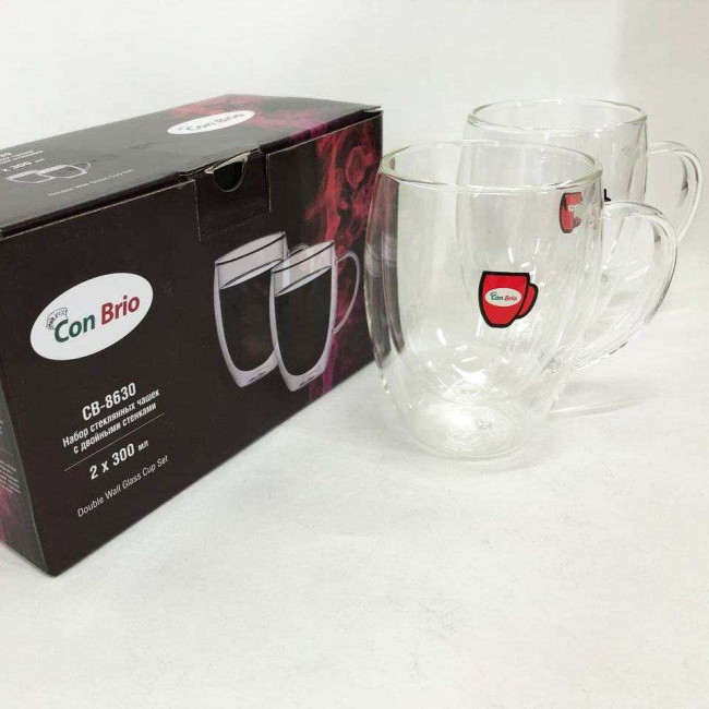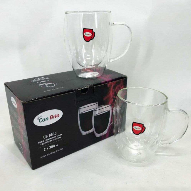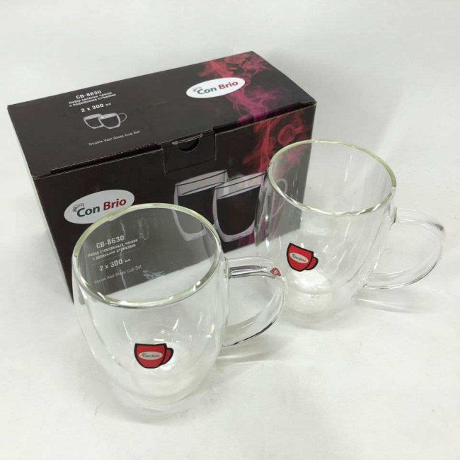 Набір скляних чашок з подвійними стінками Con Brio CB-8630 2шт, 300мл, кружки з подвійними стінками
