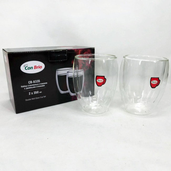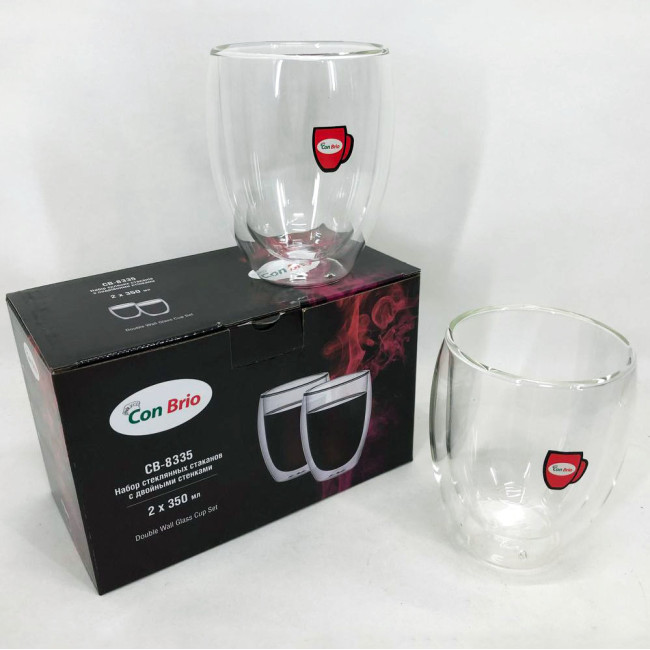 Набір склянок з подвійним дном 2 шт Con Brio CB-8335 завдяки конструкції з подвійними стінками склянки не нагріваються зовні, а також створюється тепловий ефект і температура напою зберігається більш довгий час. Об’єм 350 мл. Підходить для частого використання у барах, кафе, пабах, а також для домашнього використання. Відмінно виглядатиме при сервіруванні столу.