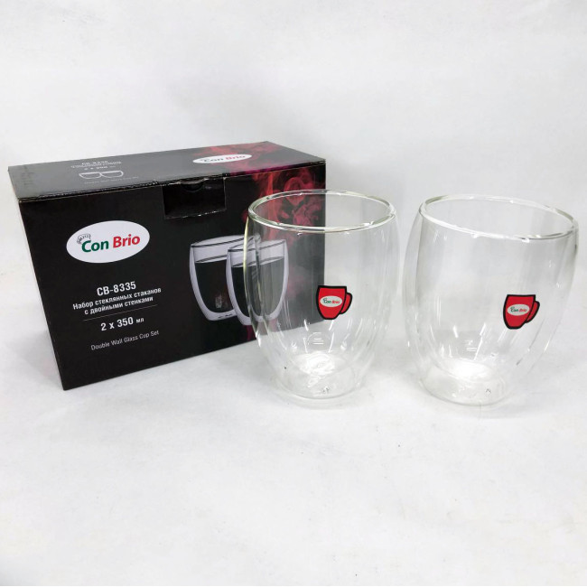 Набір скляних склянок із подвійними стінками Con Brio СВ-8335-2, 2шт, 350мл, прозорі склянки