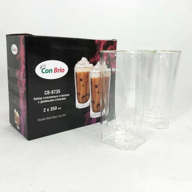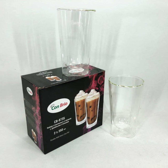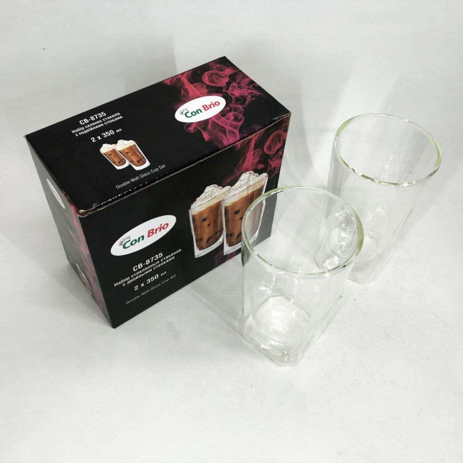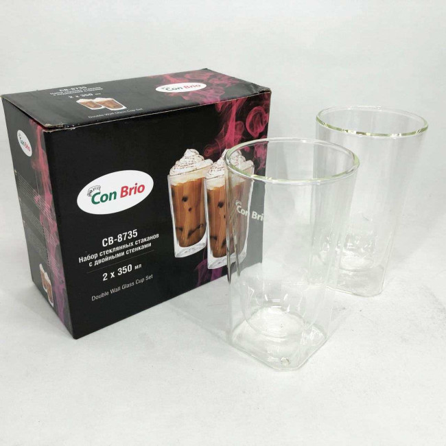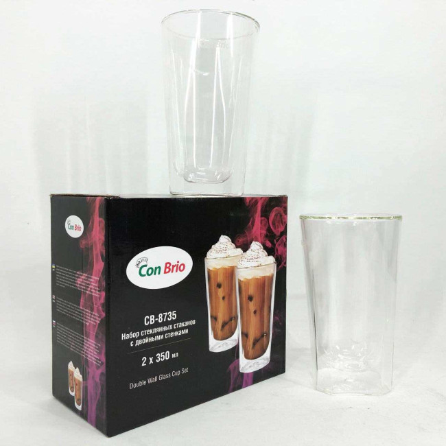 Набір склянок із подвійним дном Con Brio CB-8735-2 350 мл 2 шт, прозорі чашки з подвійними стінками
