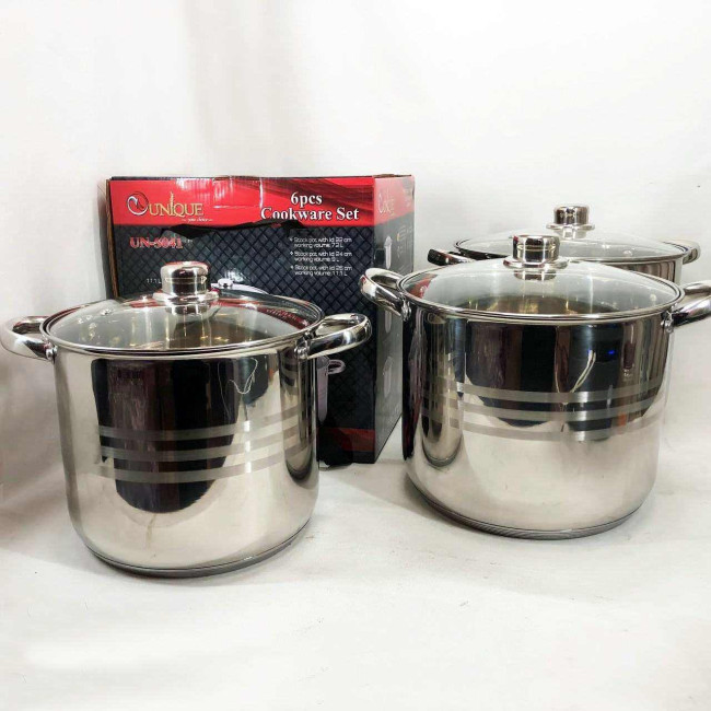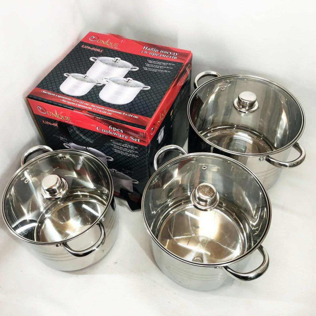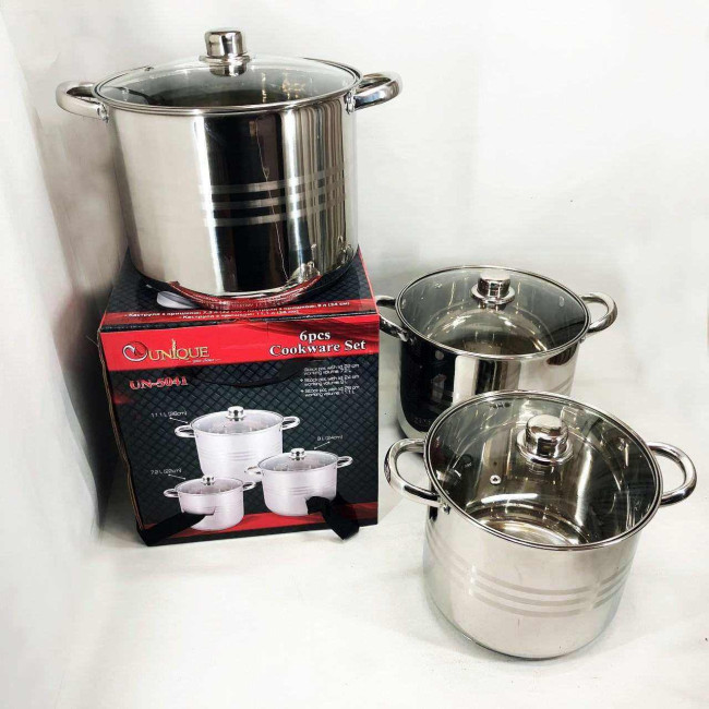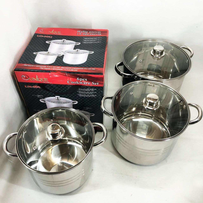Набір великих каструль Unique UN-5041 з нержавіючої сталі 5-ти шаровим дном з кришками