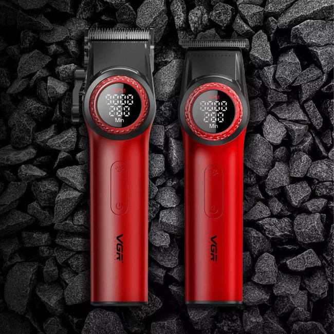 Набір VGR 2 в 1 V-001 V-977 RED, акумуляторна машинка для стрижки та триммер. Колір: червоний