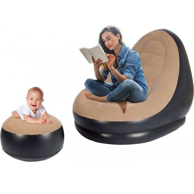 Надувне крісло з пуфом для відпочинку AIR SOFA велюрове