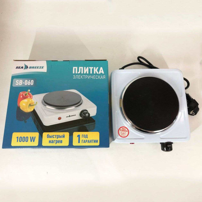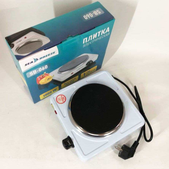 Настільна плита електрична Sea Breeze SB-060, потужна настільна електроплита. Колір: білий