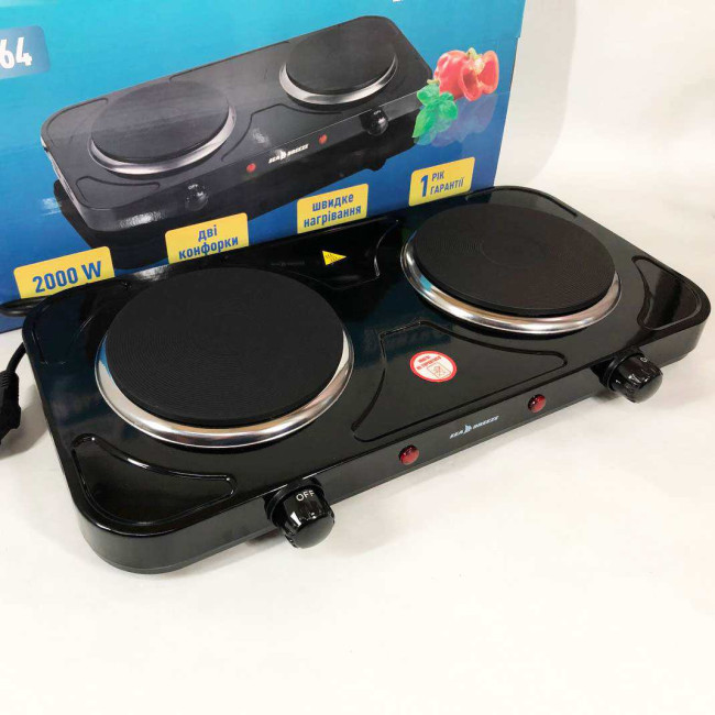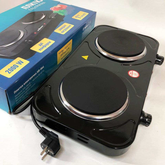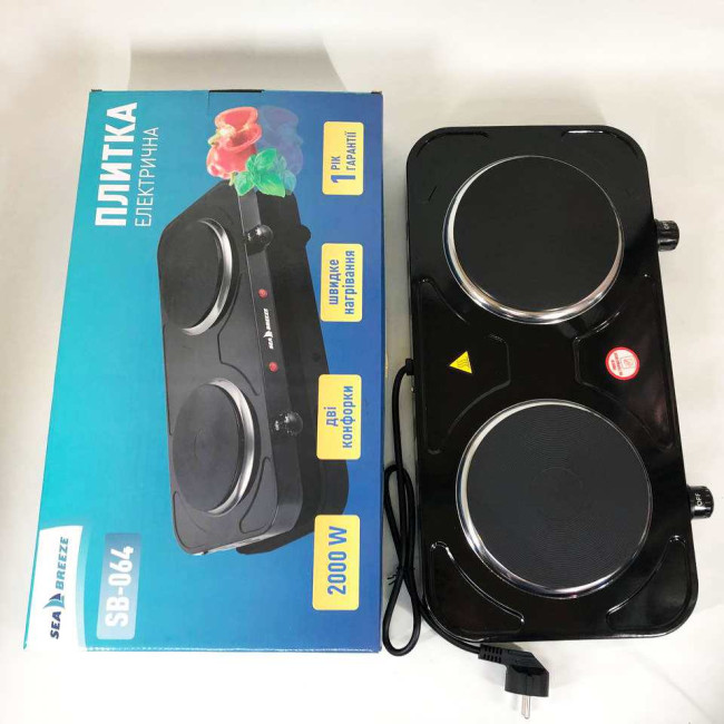 Настільна плита електрична Sea Breeze SB-064 2000 Вт, переносна настільна електроплита. Колір: чорний