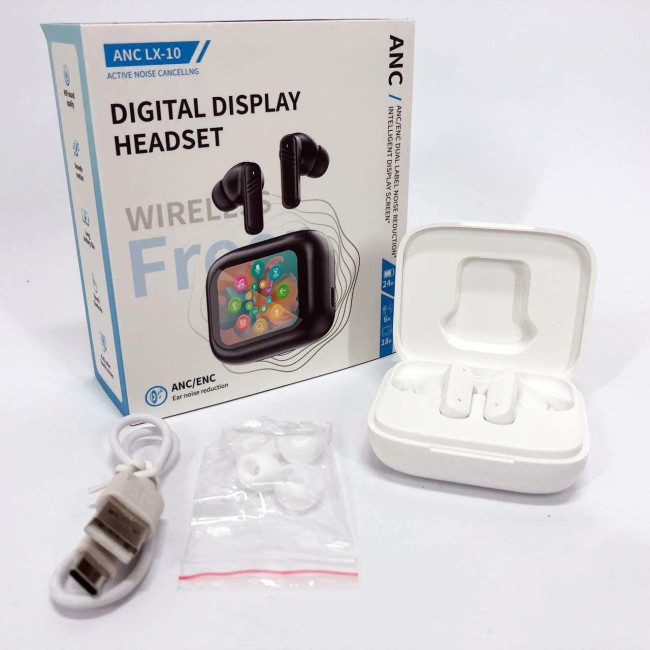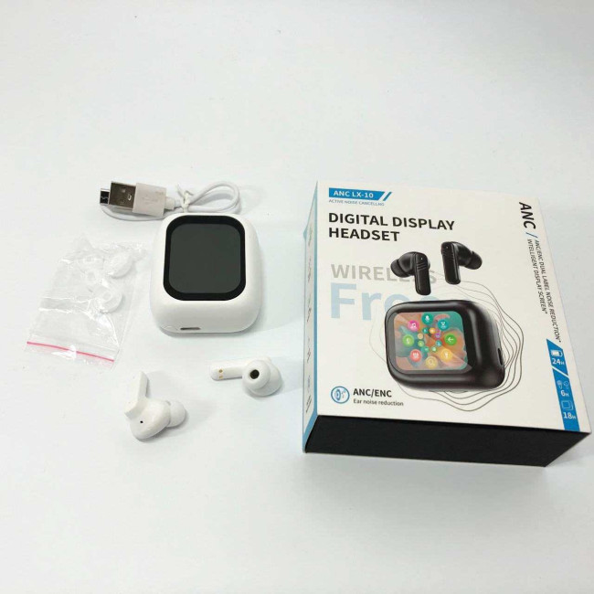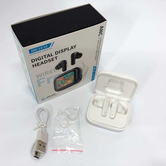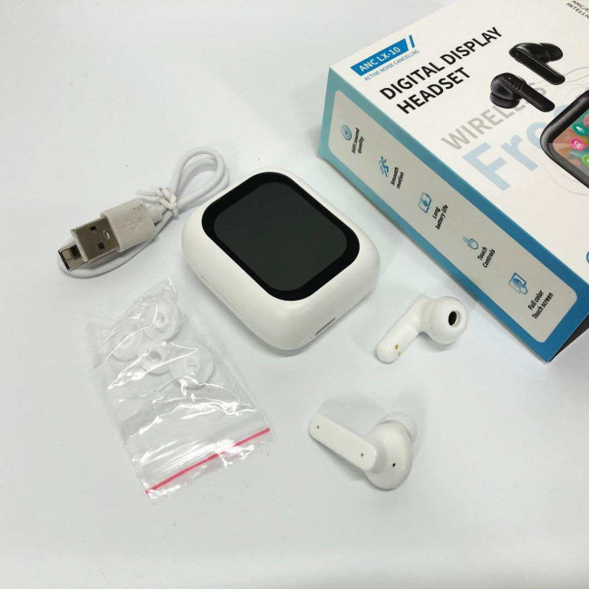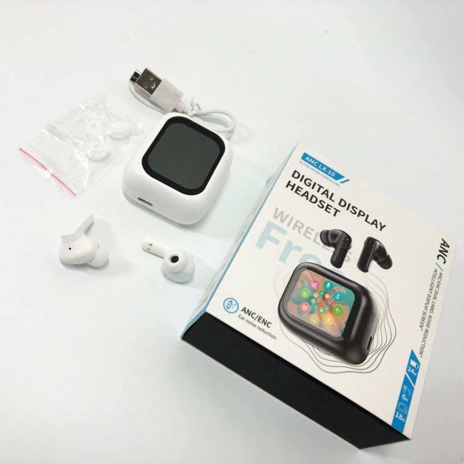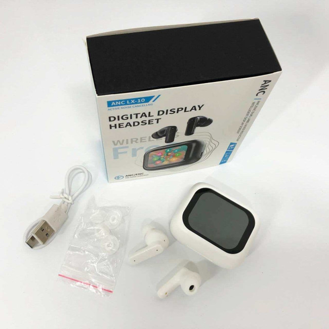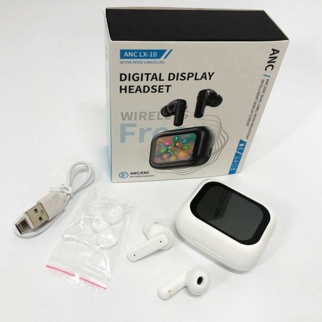 Навушники бездротові LX-10 TWS Earbuds з LED дисплеєм, Bluetooth гарнітури, Вакуумні навушники. Колір: білий