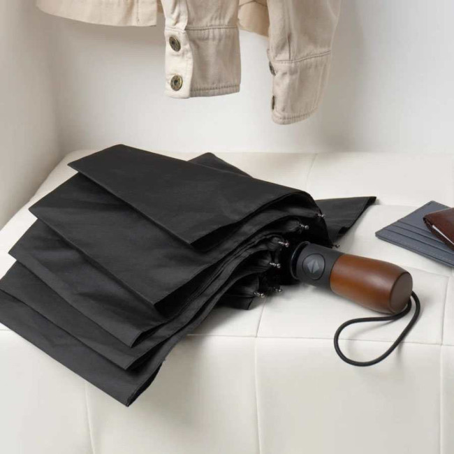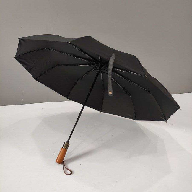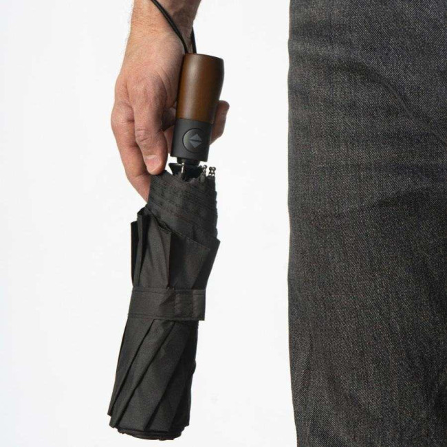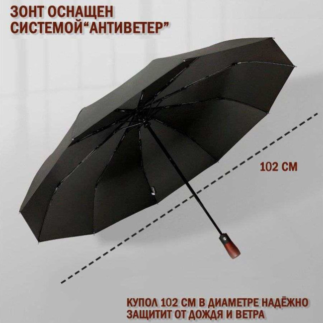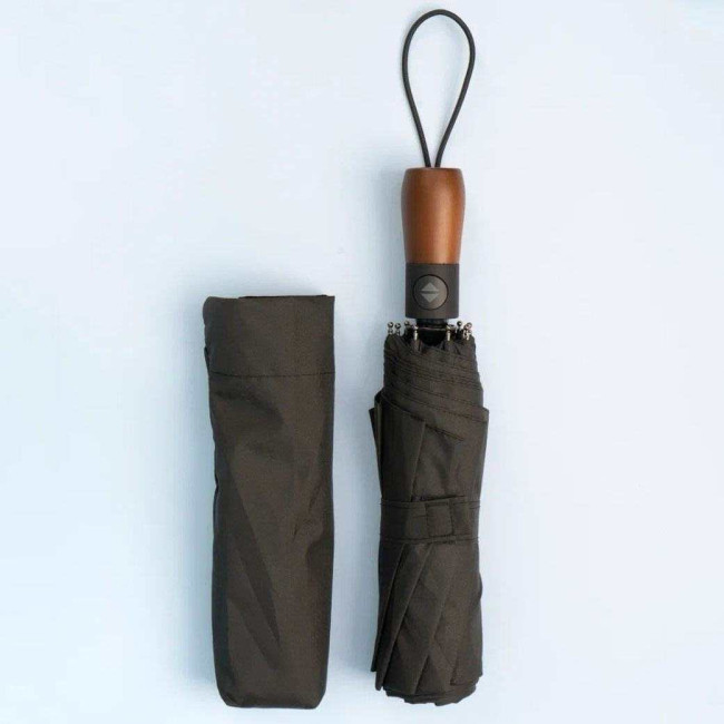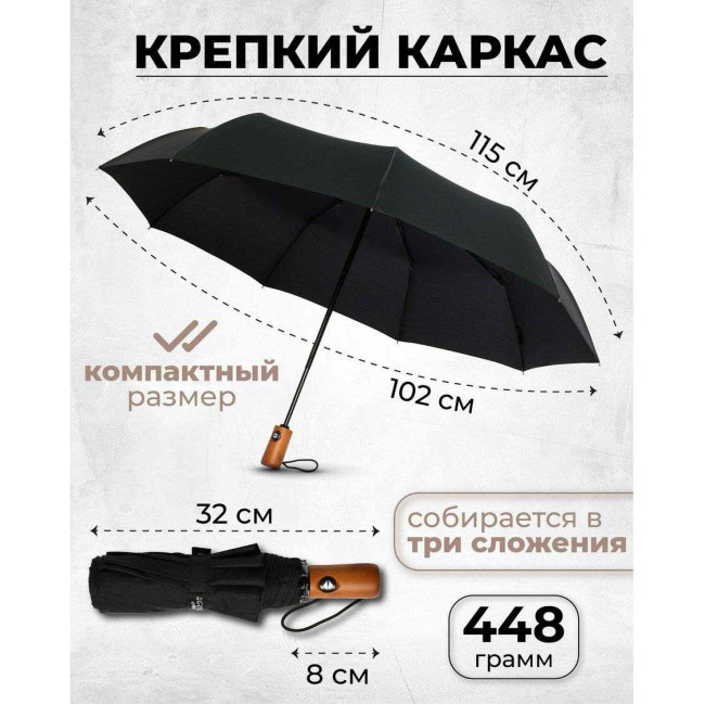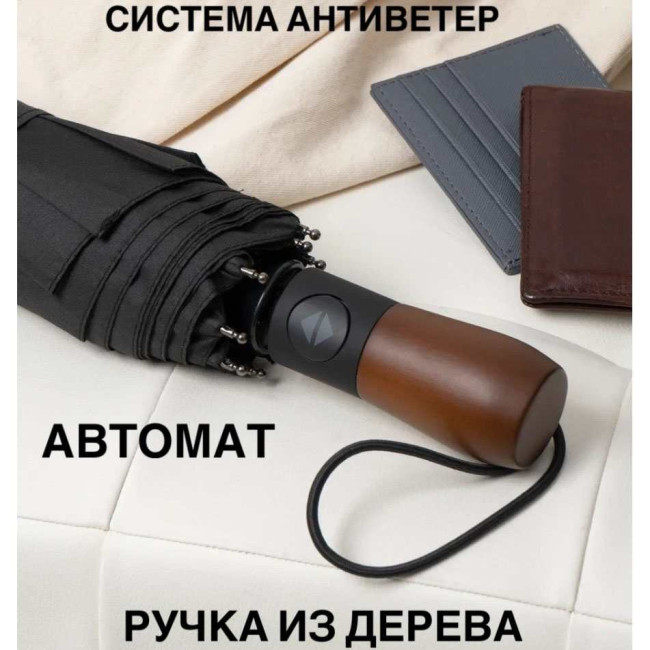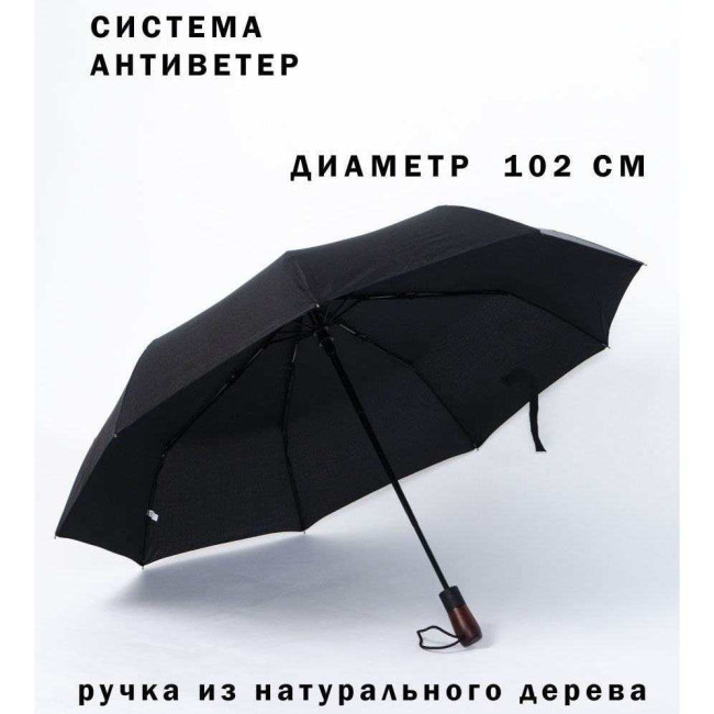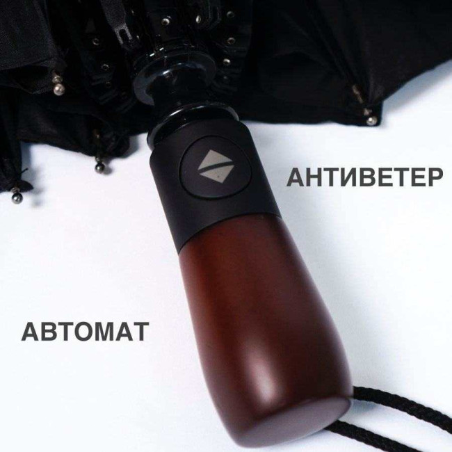 Парасоля-автомат має конструкцію в три складання, натисканням на кнопку купол відкривається і закривається. Система антивітер та зручна лаконічна пряма ергономічна ручка з дерева.