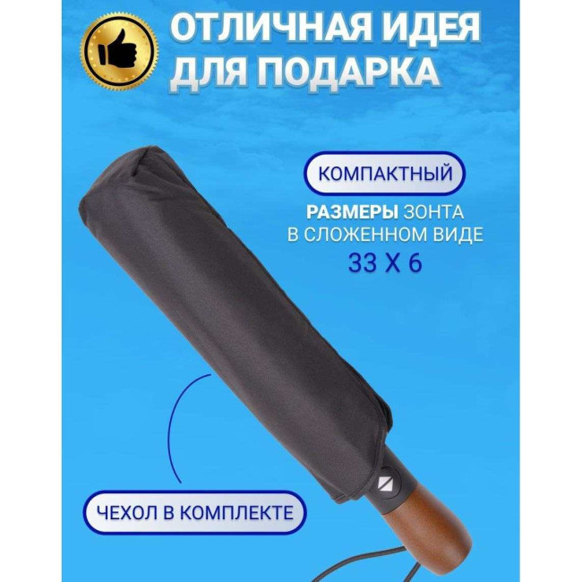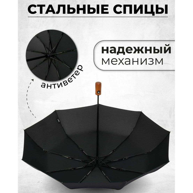 Надійна посилена конструкція із 9 спиць захистить від дощу. За рахунок великого купола ця складна парасоля може служити як сімейна парасолька, яка запросто захистить від негоди 2 людей. Ручка дерев’яна, пряма відмінно лежить у руці і не вислизає, сприяє рівномірному розподілу навантаження по всій долоні, додає статусу.