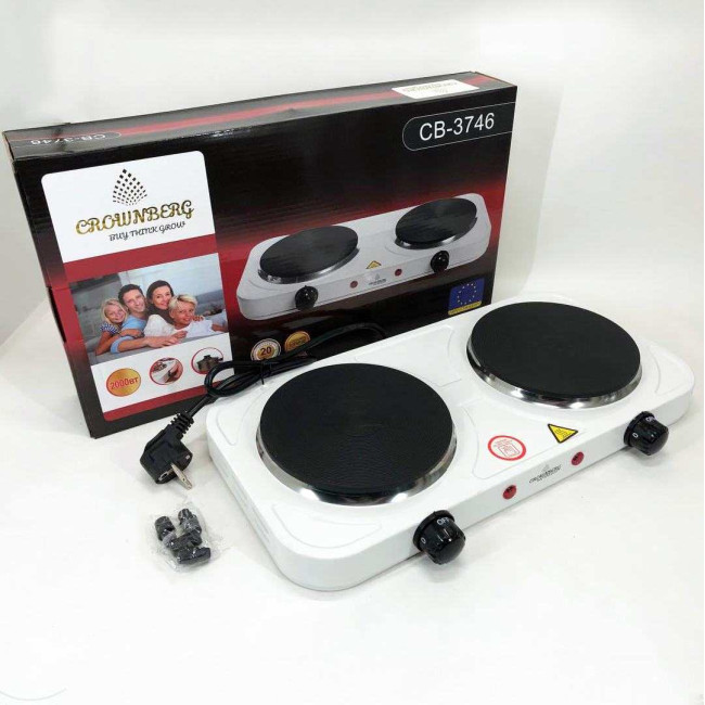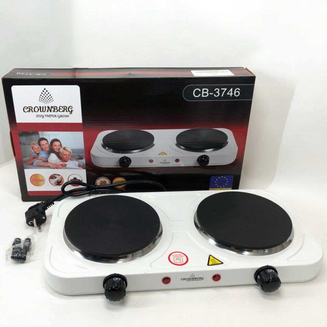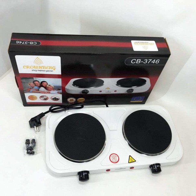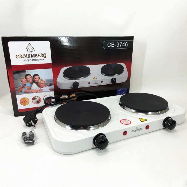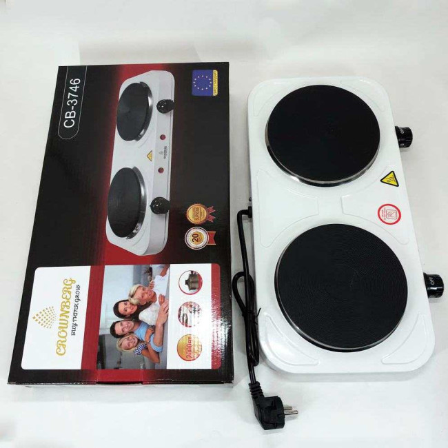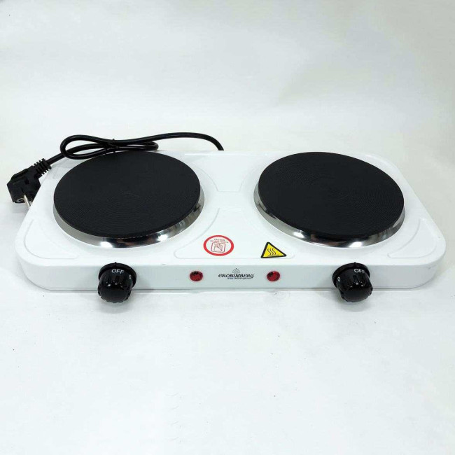 Плита електрична настільна побутова Crownberg CB-3746 двоконфоркова дискова кухонна плита 2000 Вт